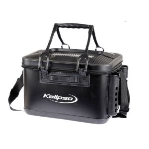 Сумка выполнена из усиленного материала EVA, обладает повышенной жесткостью и армированным дном. На внешней стороне расположены 2 кармана-держателя удилищ, что позволяет размещать Ваши удилища, без риска их повредить, например при ловле с пирса, дамбы, помоста или же в лодке. Крышка сумки оснащена надежной змейкой, обладает достаточной жесткостью, может послужить монтажным столиком. Сумку можно использовать как для хранения и транспортировке снастей и аксессуаров, так и для рыбы. Оснащение ручками и плечевым ремнём обеспечит удобство при транспортировки. Нужно отметить практичность самого материала, достаточно легко моется от грязи.