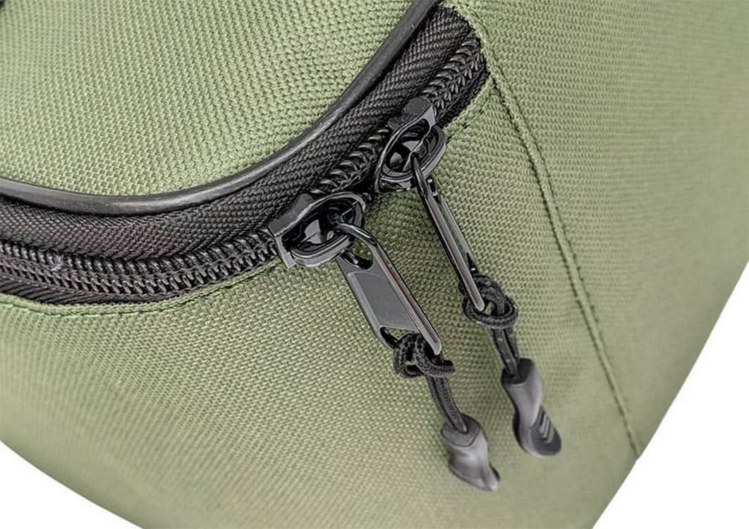 Рыболовная сумка выполнена из прочной, износостойкой ткани OxFord, надежная двойная змейка тракторного типа никогда вас не подведет, а для удобства переноски предусмотрена ручка.