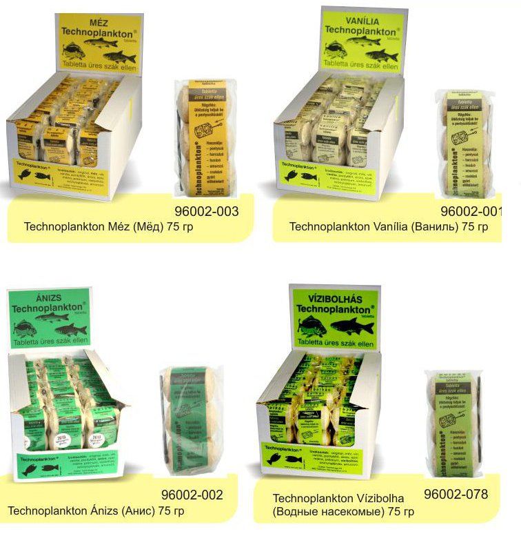 Технопланктон (Technoplankton) – это оригинальный тип прикормки, разработанный и производимый венгерской фирмой “Technomagic Kft”. Сокращенное обозначение – ТП. ТП представляет собой однородную гранулу-таблетку, состоящую из спрессованных мелкодисперсных кормовых частиц, преимущественно растительного происхождения.