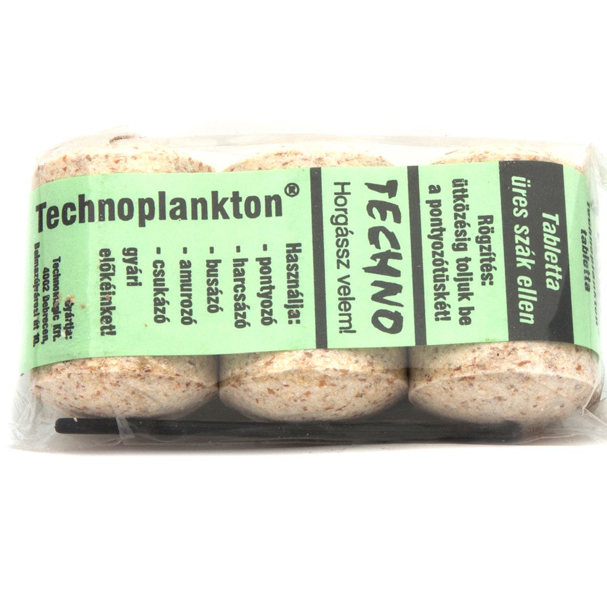 Технопланктон (Technoplankton) – это оригинальный тип прикормки, разработанный и производимый венгерской фирмой “Technomagic Kft”. Сокращенное обозначение – ТП. ТП представляет собой однородную гранулу-таблетку, состоящую из спрессованных мелкодисперсных кормовых частиц, преимущественно растительного происхождения.