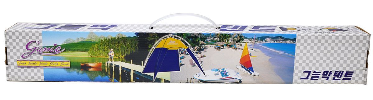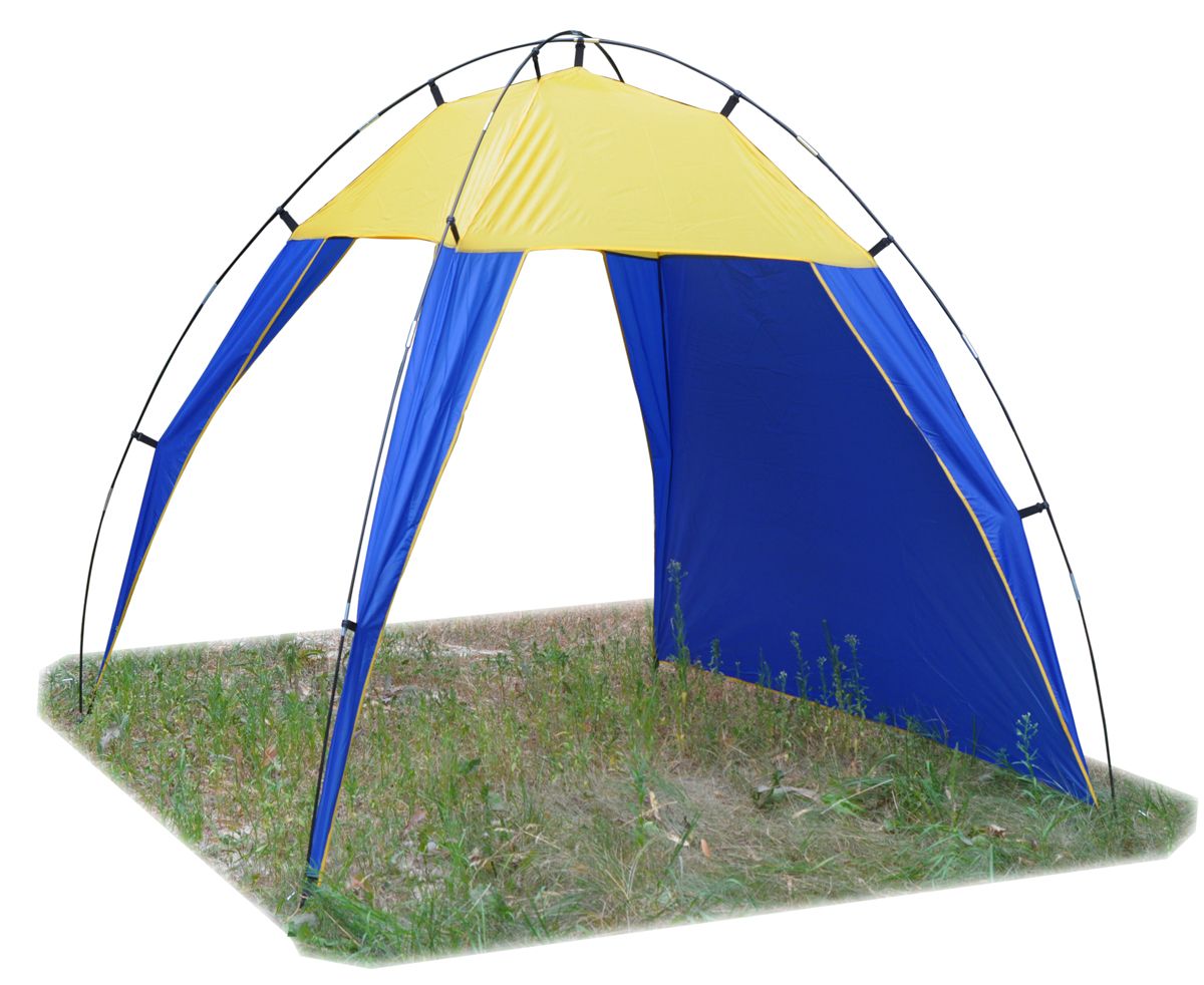 Данная модель состоит из двух стеклопластиковых дуг, материала верха влагостойкостью 600 мм и колышек. С одной стороны имеется солнцезащитная стена. Пол в этой модификации не предусмотрен. Весит солнцезащитный тент всего 2 кг и обладает очень компактными транспортировочными размерами.