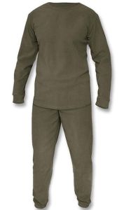 Комплект состоит из штанов и кофты, выполненных в практичном оливковом цвете из высококачественного полиэстера с флисовой подкладкой. Такое сочетание материала позволяет обеспечить качественную термоизоляцию, а также дышащую способность костюма, которая не дает телу потеть. Благодаря анатомическому крою термобельё плотно облегает тело и не пропускает внутрь холодный воздух. Практически незаметно под одеждой и не сковывает движения.