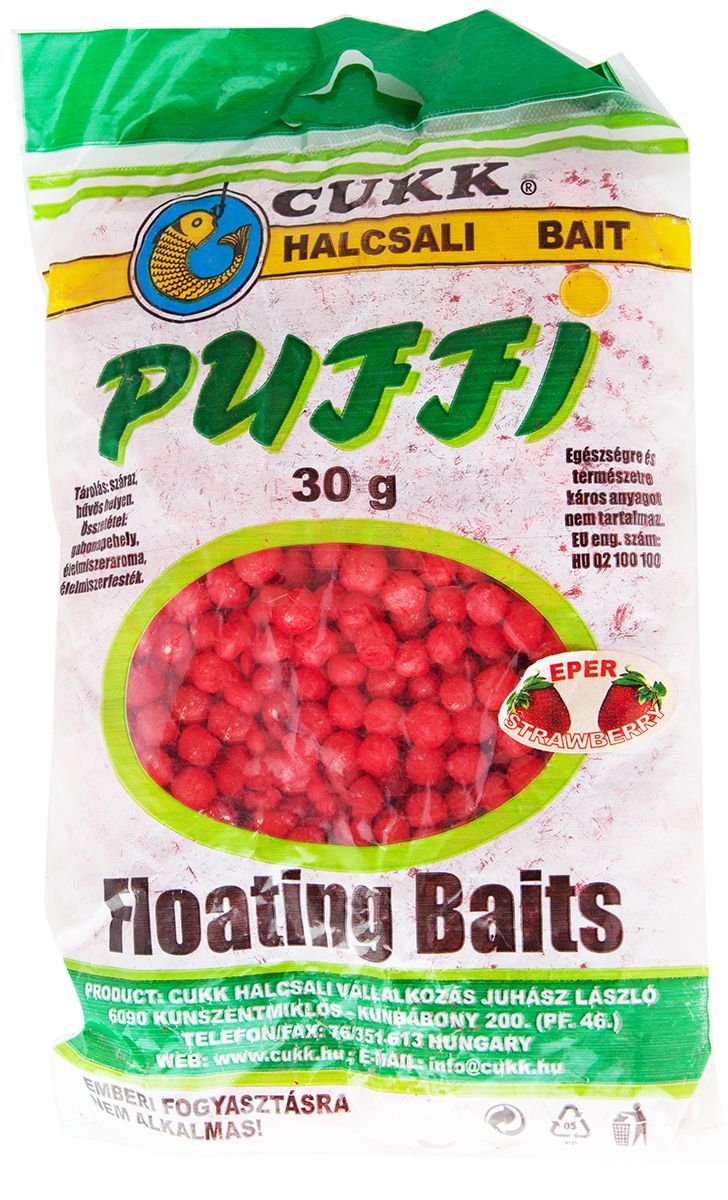 Cukk Puffi венгерского производства имеют компактную, но рыхлую структуру. Воздушное тесто Cukk необычайно легкое, поэтому оно принадлежит к числу самых эффективных наживок, особенно осенью и весной.