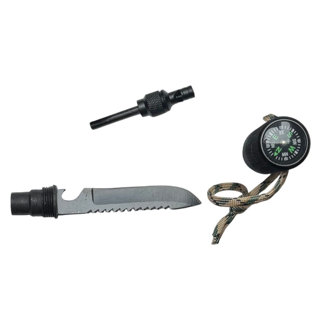 - Дополнительные опции: Молоток, нож, пила, открывалка, стеклобой, компас, отверстие под темляк, огниво, свисток