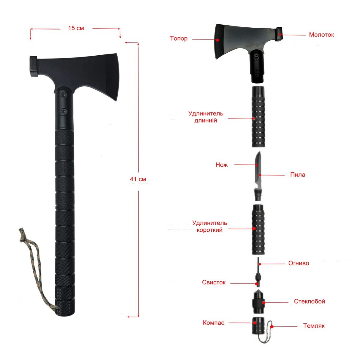Топор молоток Traveler НН41 - 10 в 1 - Разборной - Туристический - 41 см