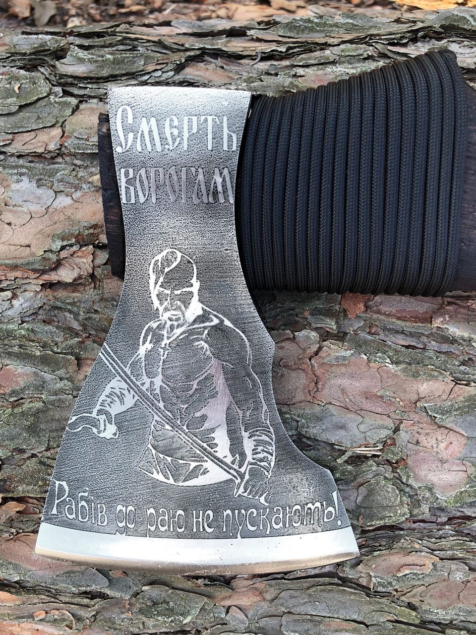 Рекомендуем обратить внимание на подарочный топор Смерть ворогам!, украшенный стилизованным рисунком в украинском патриотическом стиле.