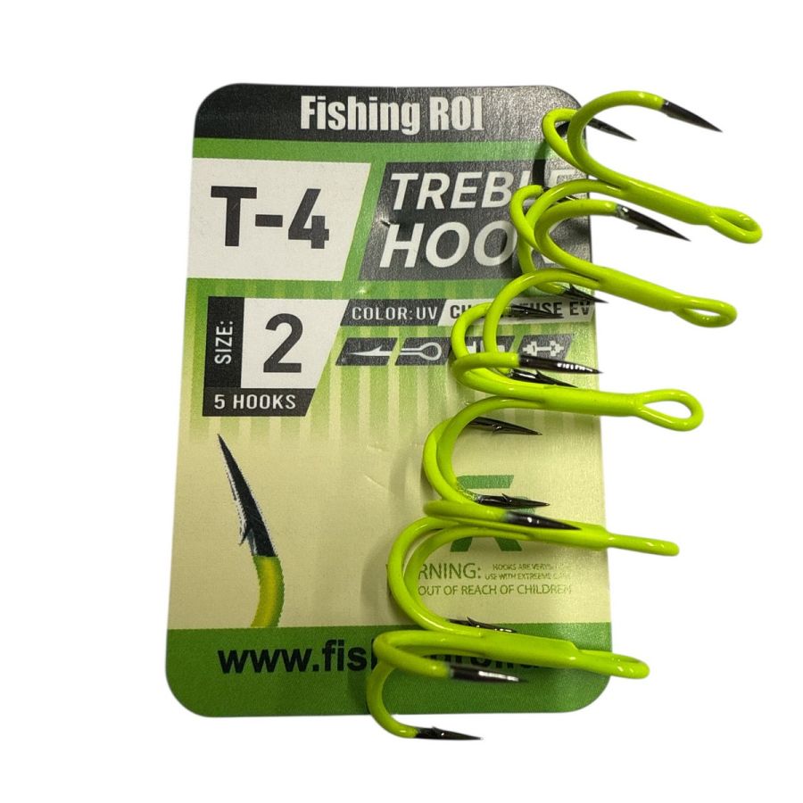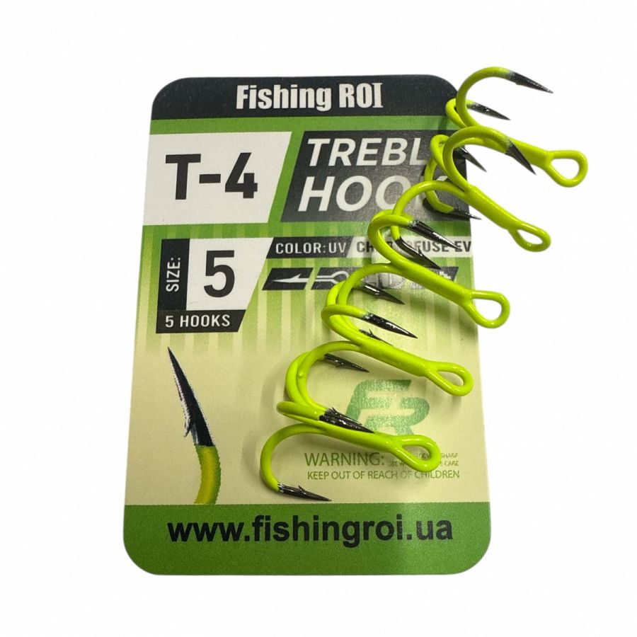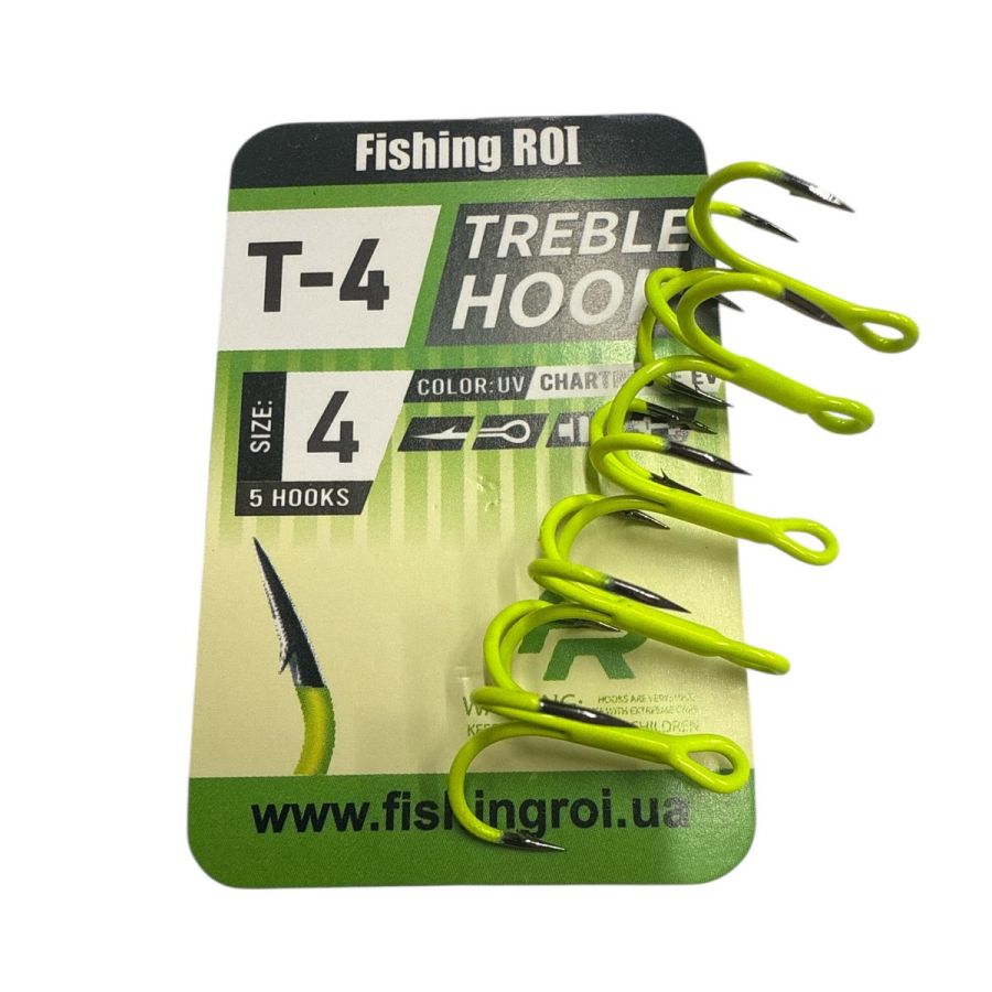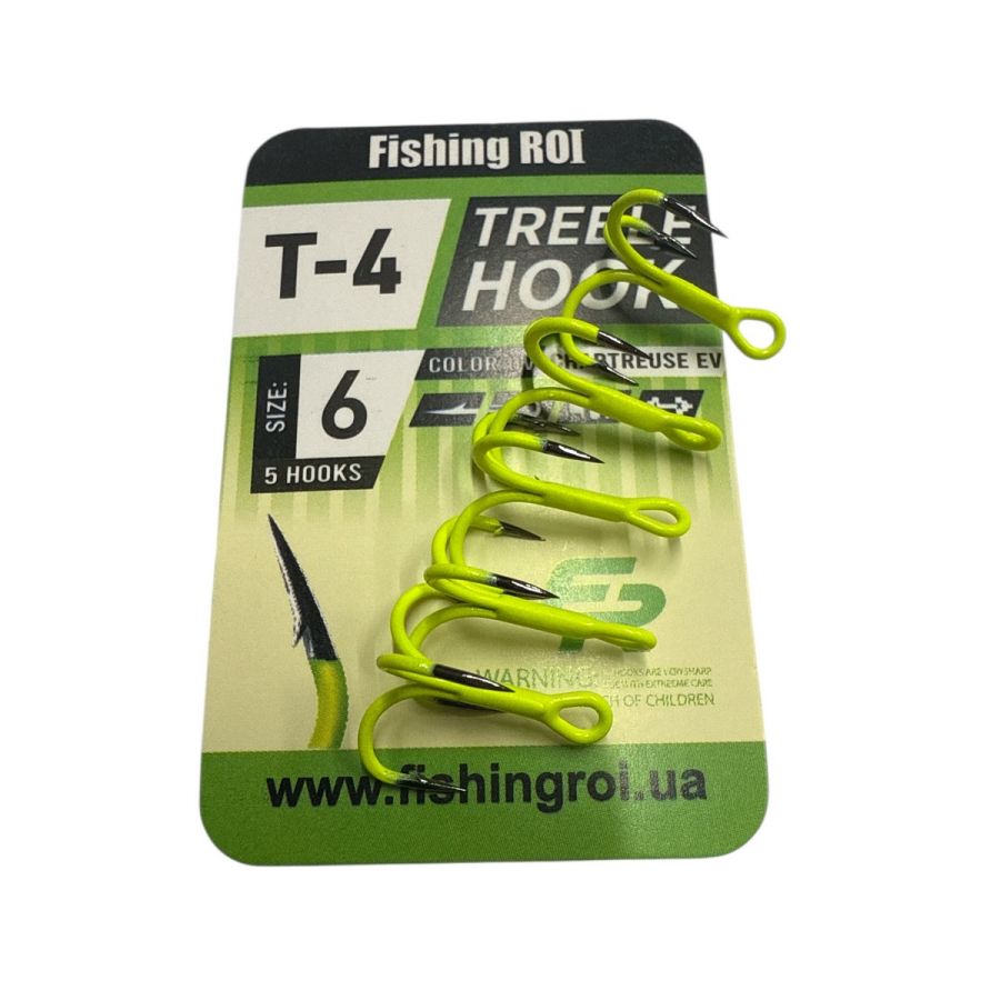 Тройник Fishing ROI Treble Hook T-4 UV Chartreuse BC - Корея - 5 шт/уп