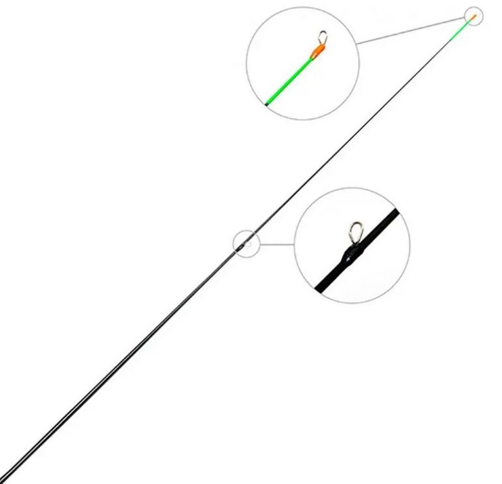 Уникальность этой удочки в том, что ей не нужен кивок. Здесь сигнализатором поклевки является сам хлыст из тончайшего стеклопластика, что позволяет увидеть любую поклевку.