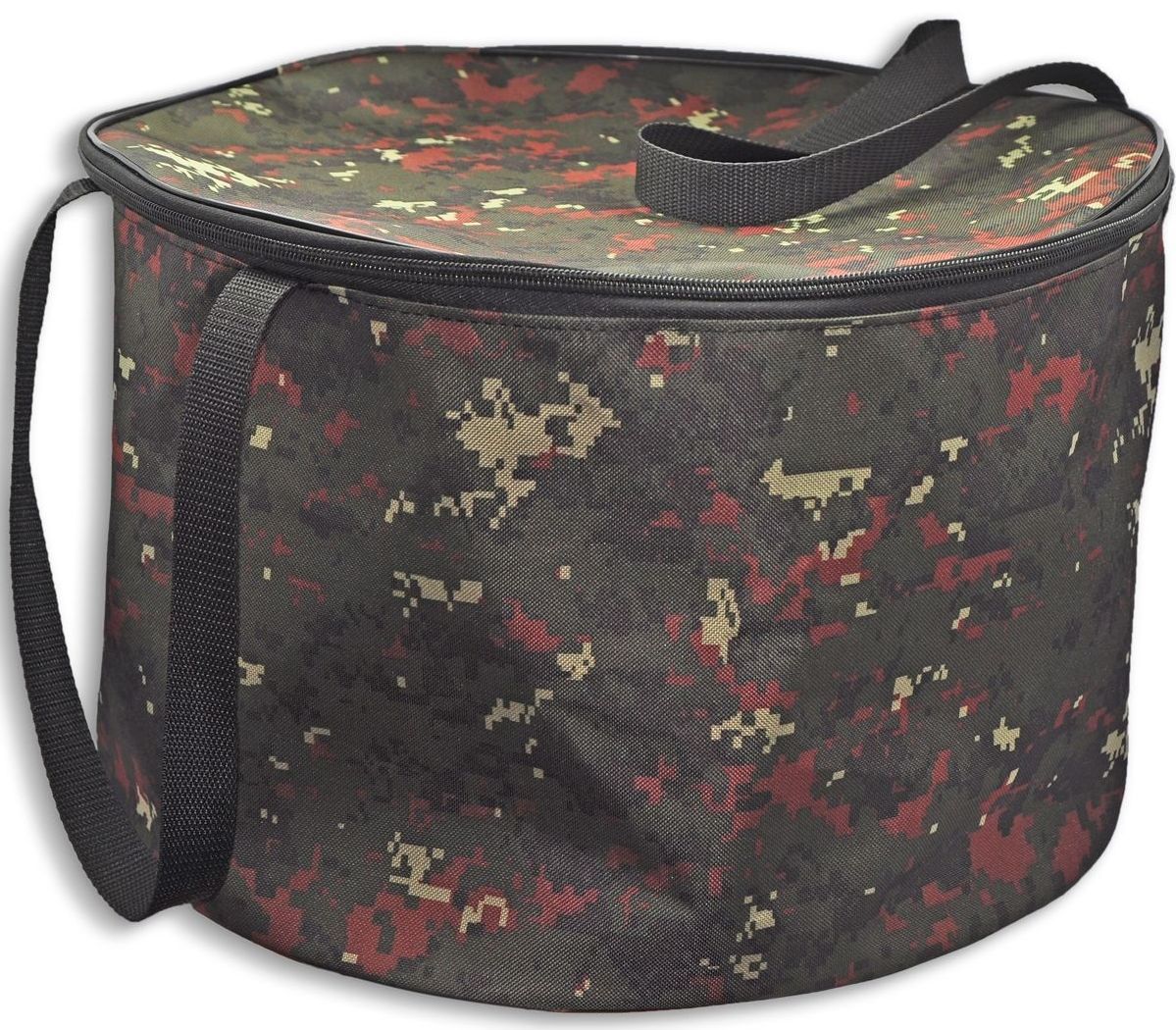 Мягкое ведро с крышкой выполнено из ПВХ и предназначено для замеса прикормки, перевоза и хранения рыбы, грязных и чистых вещей, не острых предметов.