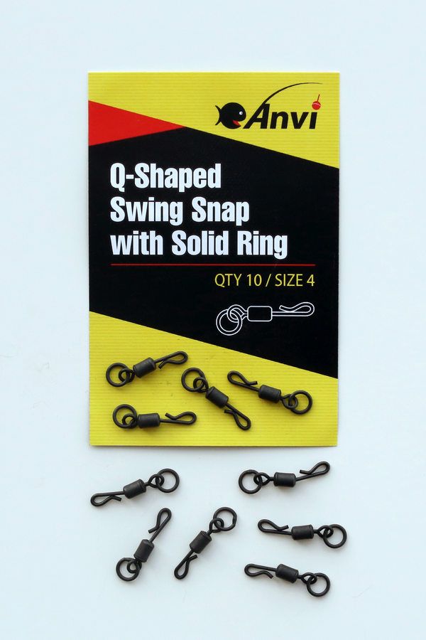 Вертлюг быстросъемный для вертолета с кольцом Anvi Q-Shaped Swing Snap with Solid Ring - Размер 4 - Черный матовый - 10 шт/уп