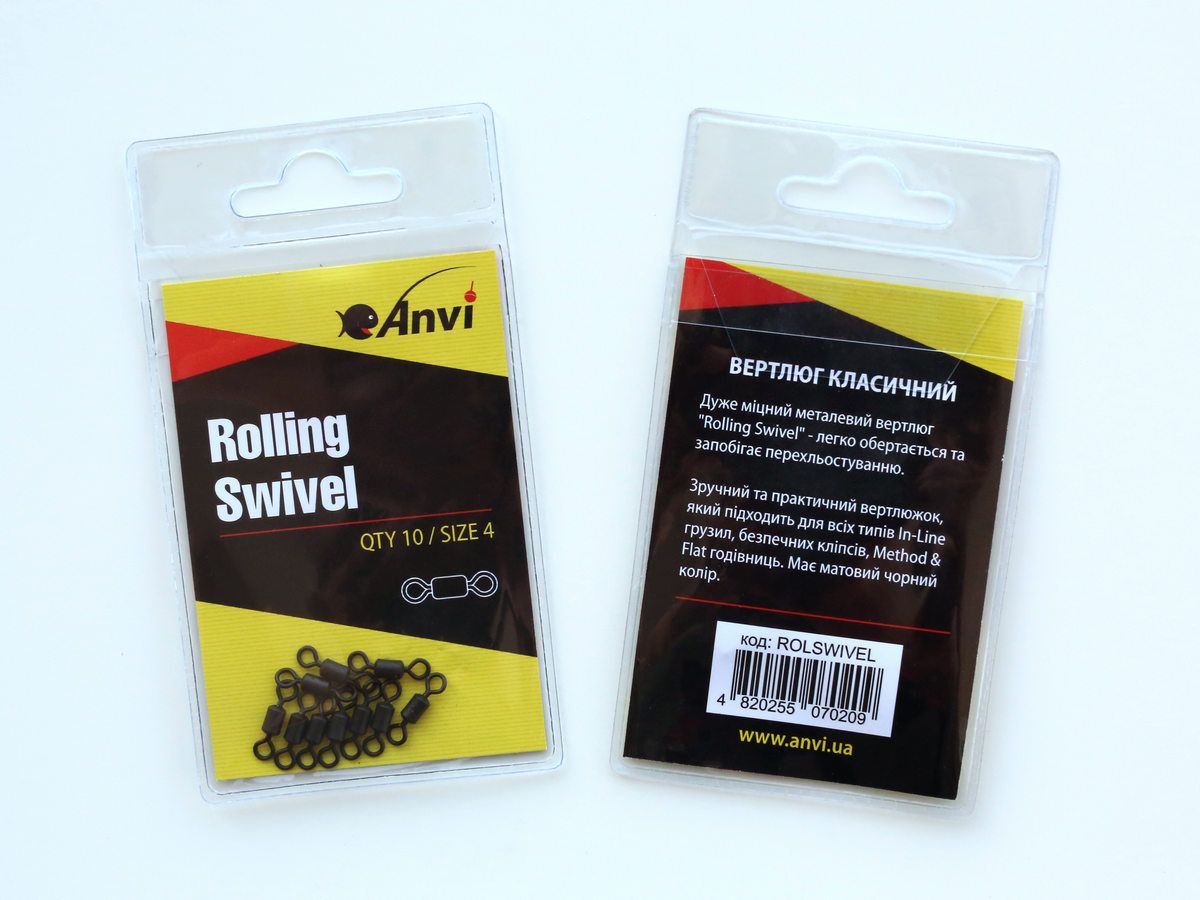 Вертлюг классический Anvi Rolling Swivel - Размер 4 - Черный матовый - 10 шт/уп