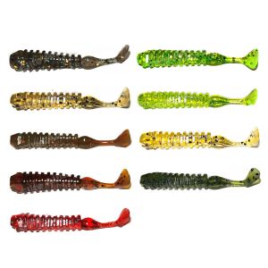 Выпускается в различных расцветках, от кислотного до натурального, что позволяет подобрать необходимый для ваших условий вариант. Имеет характерный рыбный запах, дополнительно провоцирующий хищника на поклёвку. Что касается проводок, наиболее полно раскрывающих игру этого виброхвоста, то это ступенчатая анимация, с чередованием подыгрываний бланком, а также протягиваний по дну.