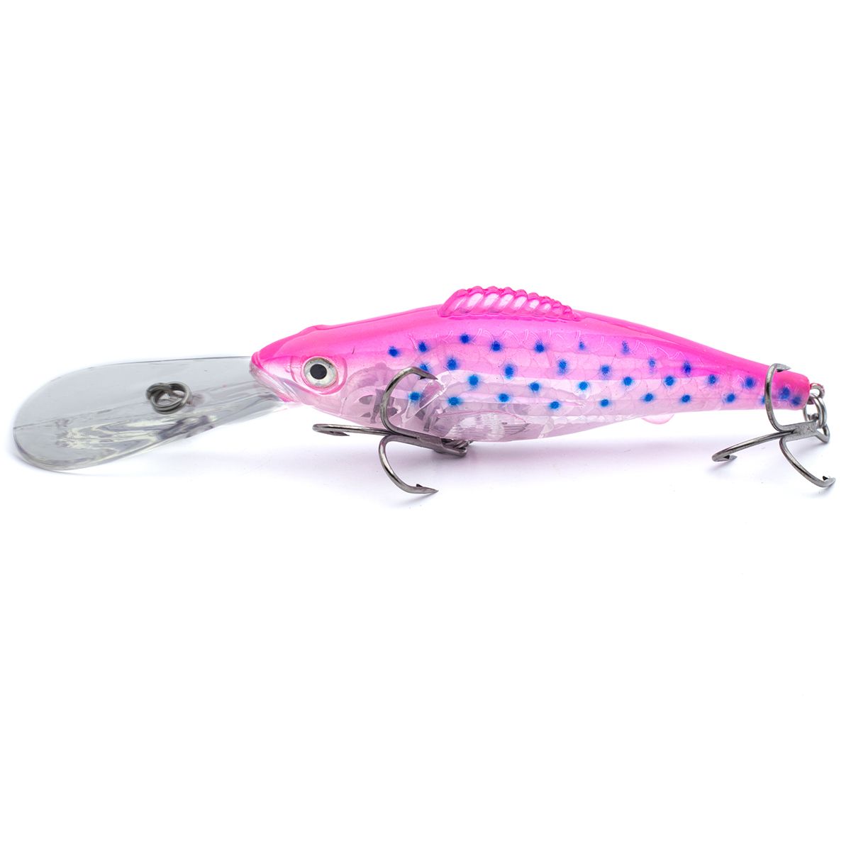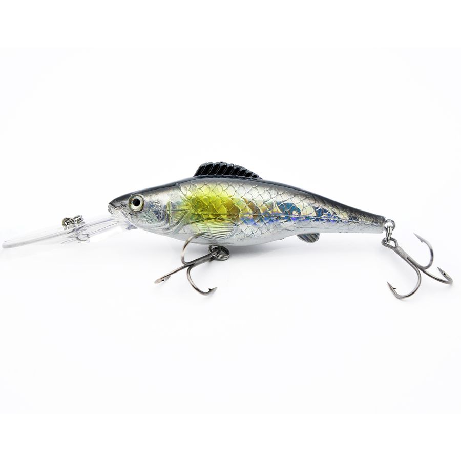 Оборудована модель массивной лопаткой, обеспечивающей качественное заглубление на проводке. Имеет два сверхострых тройных крючка, в хвостовой части и под брюшком.