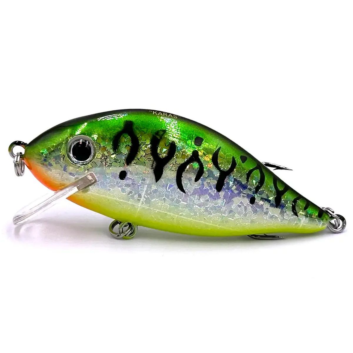 Воблер Gladiator Karas - своей формой напоминает карасика или густеру. Наиболее результативный при использовании на заросших мелководьях с глубинами до 2 метров как с берега, так и с лодки. Также есть возможность использовать при троллинге на глубинах от 2 до 4.5 метров. Имеет активную собственную игру, которая делает его уловистым как на равномерной проводке, так и на проводке с короткими паузами или остановками.