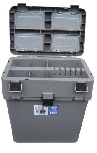 Ящик изготовлен из ударопрочного, морозостойкого пластика (до - 40 С). Не пропускает и не впитывает воду. Надежная крышка ящика имеет комфортное мягкое сидение.