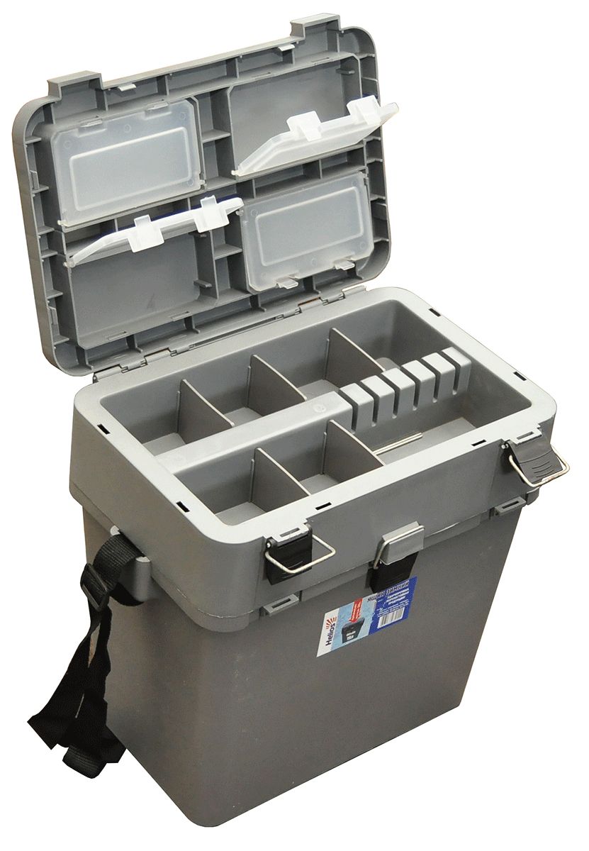 Ящик зимний позволит аккуратно хранить рыболовные принадлежности. В нижнем отделении можно хранить удочки, рыбу, одежду и другие крупные аксессуары для зимней ловли. В крышке ящика есть несколько отделений для хранения мелочей. В комплекте к зимнему ящику идет широкий ремешок для удобной транспортировки ящика на льду.
