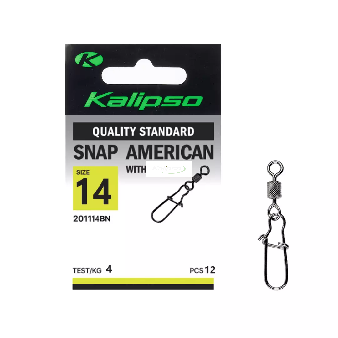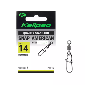 Застежка Kalipso Snap American with swivel предназначена для различных типов оборудований силиконовых приспособлений, как обычного шарнирного монтажа, так и для оснащения дроп-шот или отводного поводка.