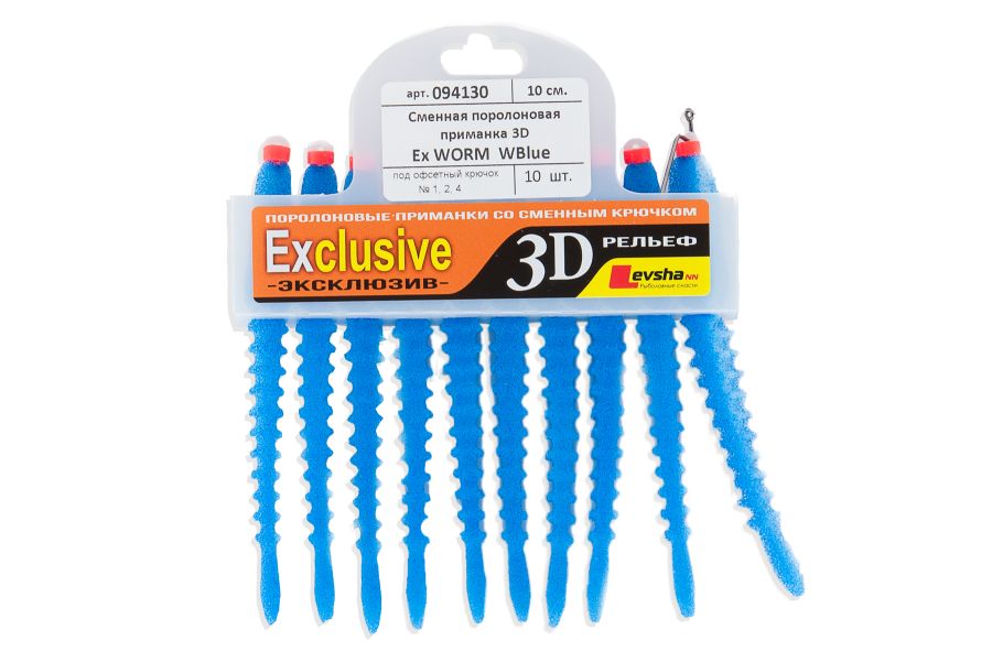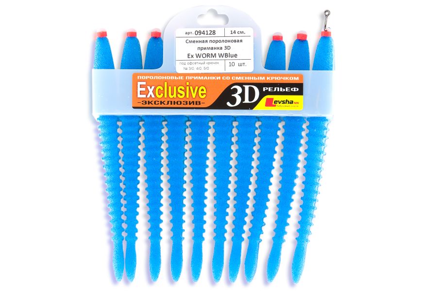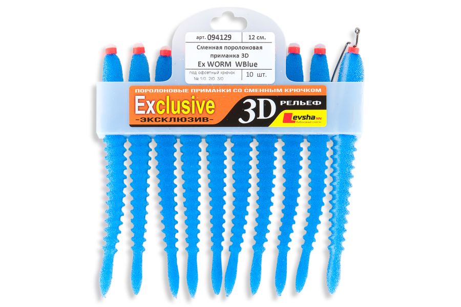 Приманки серії Ex WORM це рівноцінна заміна силіконової приманки - хробака. Вони вважаються одними з найбільш популярних серед спінінгістів внаслідок своєї уловистості. Гра поролонки Levsha 3D Ex WORM дуже реалістична, повторює рухи справжньої рибки. Але є у них і недолік - це недовгий термін служби матеріалу. Таким приманок часто потрібна заміна, тому готові набори від фірми Лівша НН - відмінне рішення. Зручність цієї моделі полягає в тому, що на заміну порваної рибки йдуть 2-3 секунди.