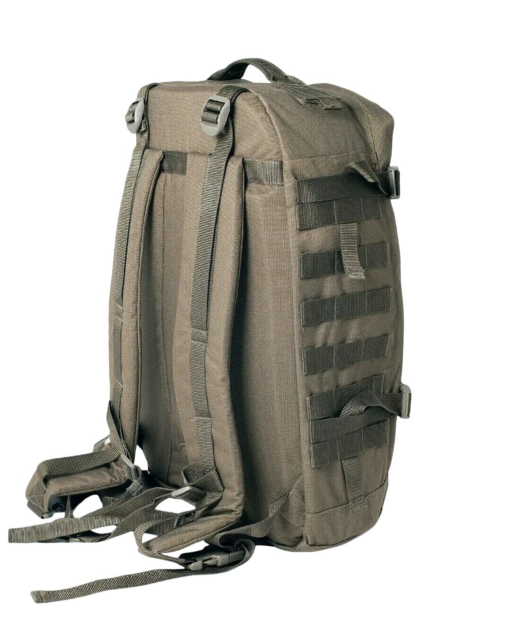 РБІ складається із одного відділення. Є внутрішня кишеня на спинці та кишеня на змійці з іншого боку. З боків рюкзака є системи бічних та нижніх регульованих стяжок, системи кріплення типу MOLLE. Рюкзак закривається за допомогою застібки-блискавки з двома бігунками, застібка захищена планкою. На передній панелі ззовні розташовані сім рядів вічок типу MOLLE. До верхньої частини передньої панелі пришити дві текстильні застібки «петлі». На передній панелі виробу розташовані чотири гніздові частини застібок «фастекс» системи бічних регульованих стяжок, які фіксуються в петлі текстильної тасьми, що утворює вічко типу MOLLE.
