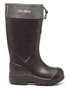 Колодка розроблена спеціально для широкої стопи і високого підйому. Завдяки широкій халяві чоботи легко знімати і одягати без допомоги рук. Висота чобота з ЕВА з манжетом становить в середньому 41 см, т. є. це тип коротких чобіт, в яких зручно сидіти на зимовій риболовлі. У чоботях з ЕВА TORVI -45°C також зручно ходити. Не тільки тому, що матеріал ЕВА легкий і пружний, але і тому, що край м'якого вкладиша вище краю чобота (але нижче манжета). Таким чином, ЕВА не травмує гомілку людини.