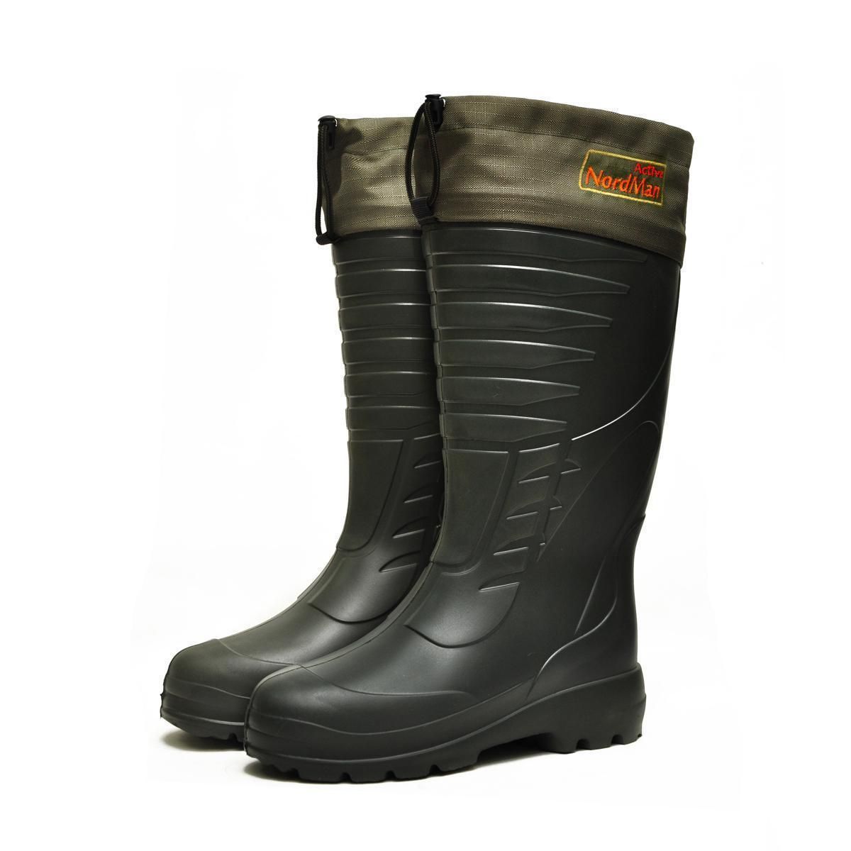 Чоботи Nordman Aсtive -30 ° ПЕ-5 УММ - утеплене гумове взуття для чоловіків, яке відмінно підійде рибакам і мисливцям. Має високу халяву, яка дозволяє не тільки ходити по калюжах і бруду, а й по прибережній мілководній частині водойми. Зроблені з ЕВА - матеріалу, який відрізняється граничною легкістю, що гарантує комфорт і дозволяє ходити тривалий час не втомлюючи ніг зайвої вагою взуття.
