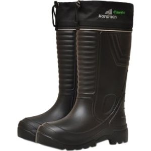 Чоботи Nordman Classic з ЕВА для зимового полювання і риболовлі. Легкі і теплі. Зручна колодка, високий підйом і широка халява. Багатошаровий вкладиш, що відводить вологу, c використанням натурального хутра (не менше 50%) і фольгованого полотна з волокнами льону і вовни.