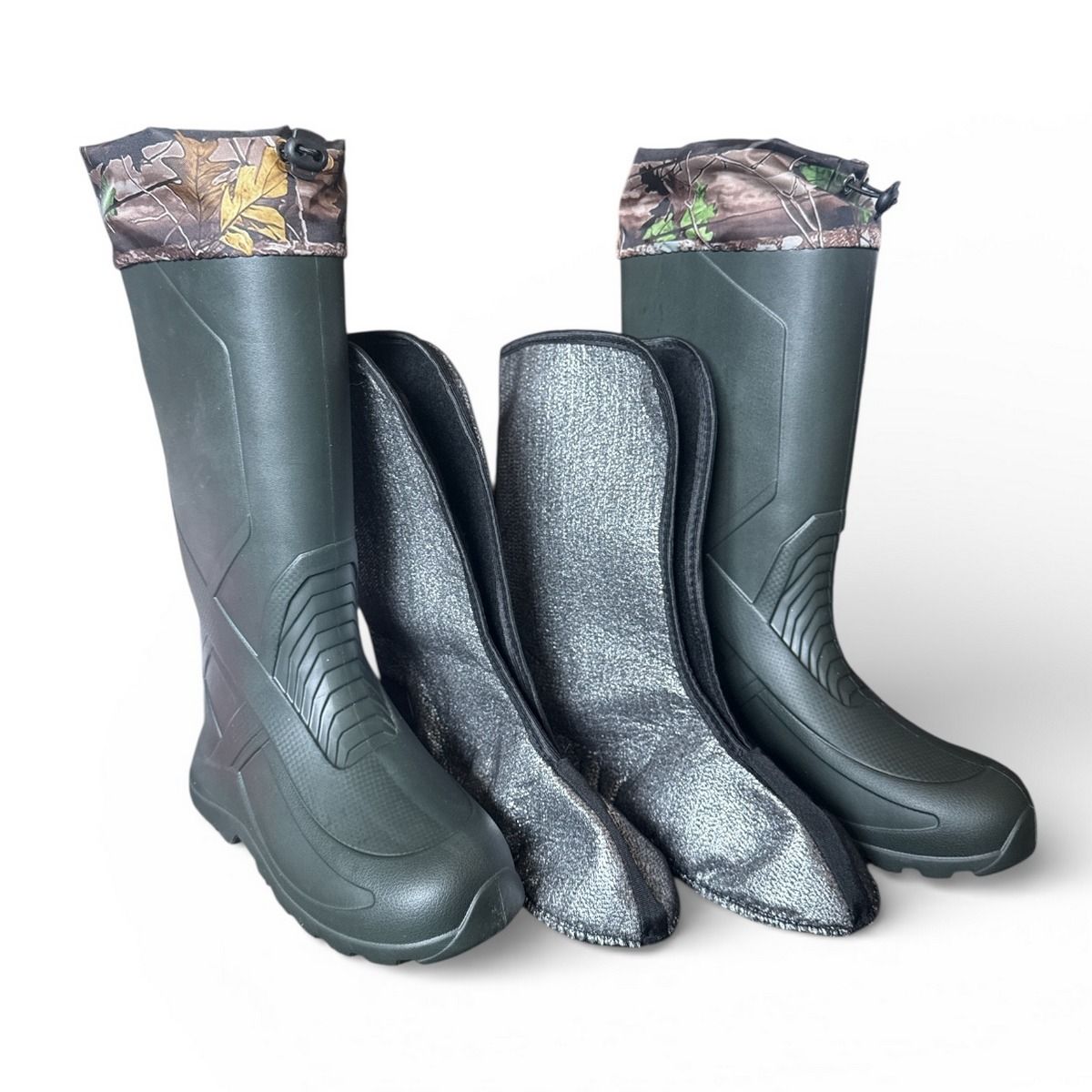 Чоботи комплектуються фольгованим вкладишем (шкарпетка). Вкладиш зроблений з багатошарового сендвіча, який працює на захист від холоду, збереження тепла тіла, виведення вологи і зручність руху. З його допомогою можна перетворити звичайні гумові чоботи на утеплене зимове взуття.