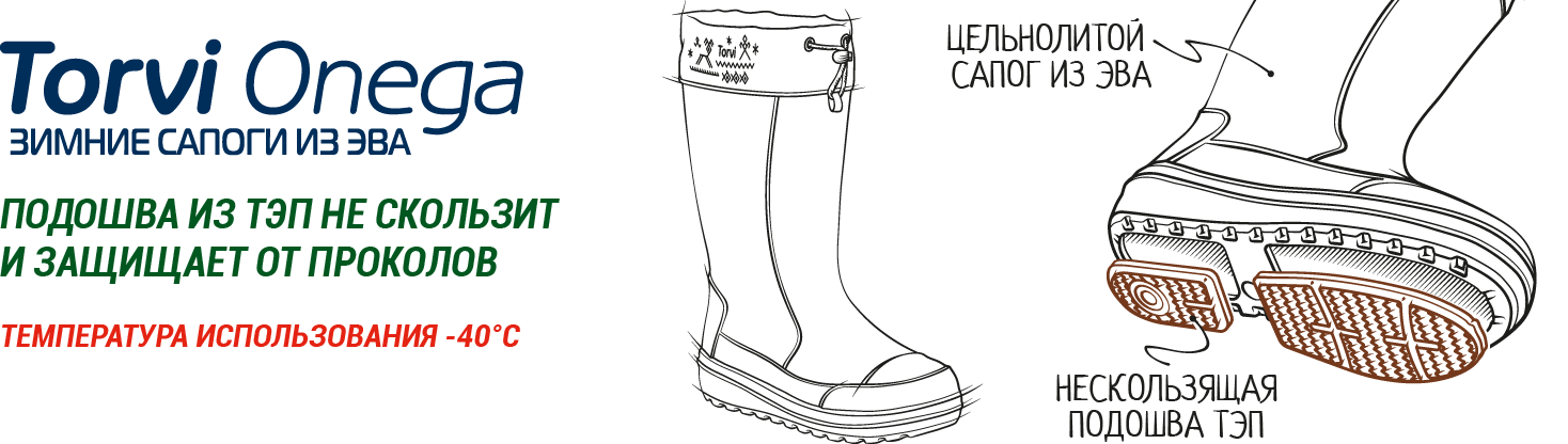 Сучасні, зручні, багатофункціональні чоботи з ЕВА Torvi Onega призначені для людей, які ведуть активний спосіб життя, для прогулянок на природі з сім'єю, дітьми і домашніми тваринами. Натхненням для дизайну моделі послужили національні орнаменти народу Комі.