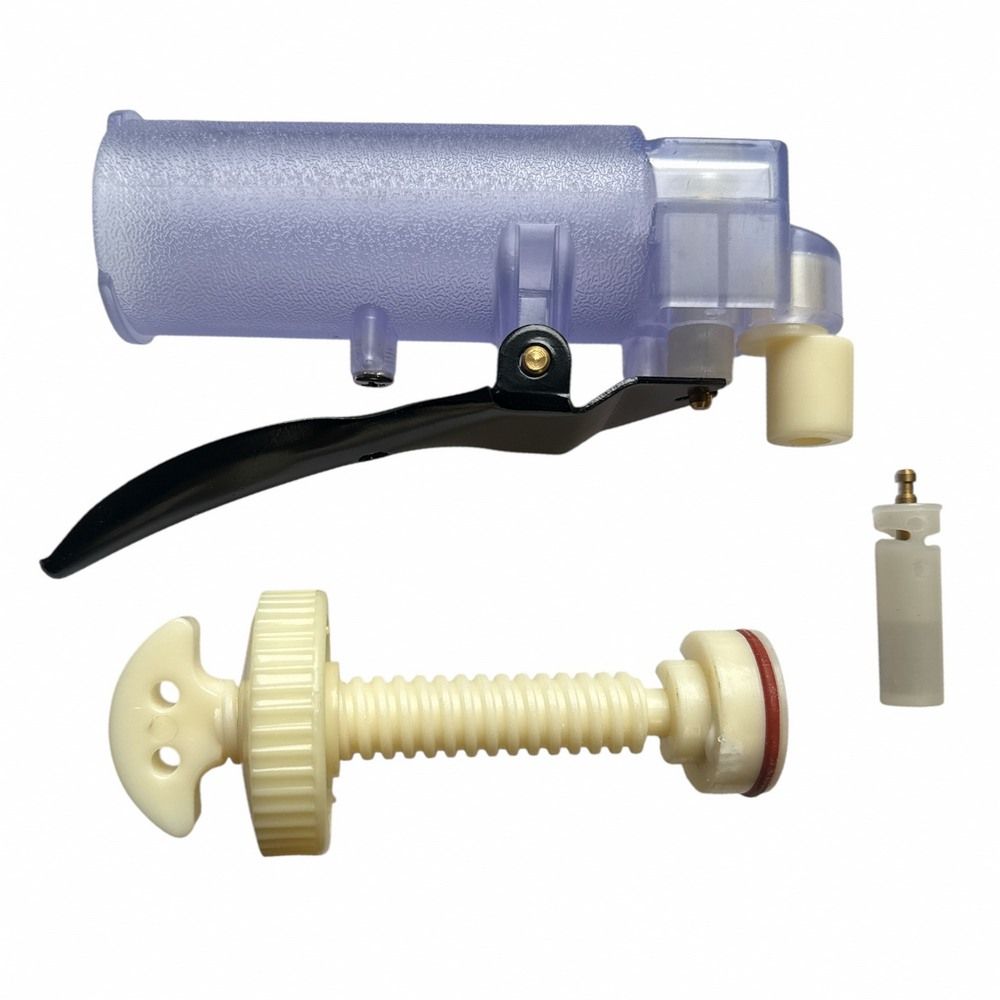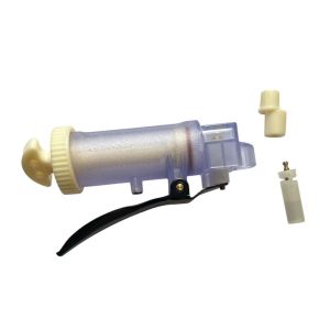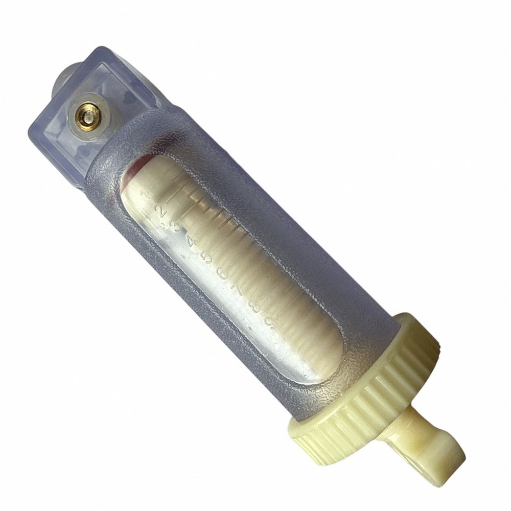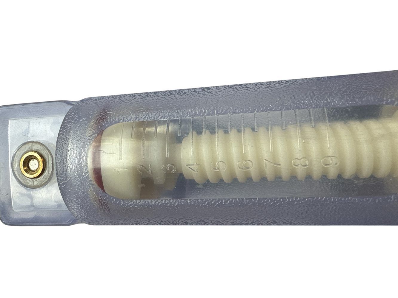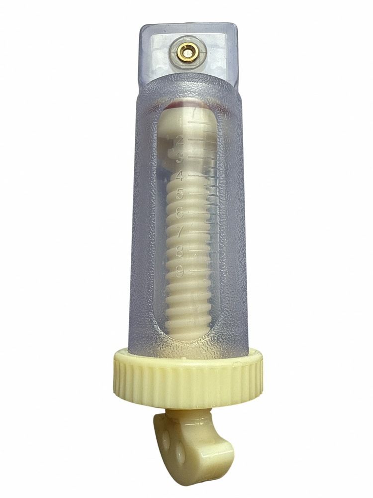 - За допомогою прокручування шприца створюєте тиск, щоб при натисканні на важіль наживка виштовхувалася