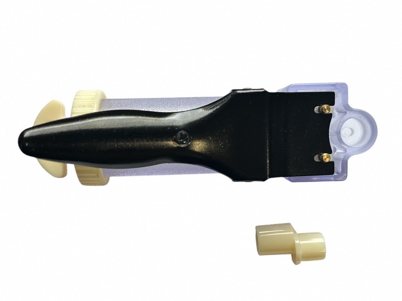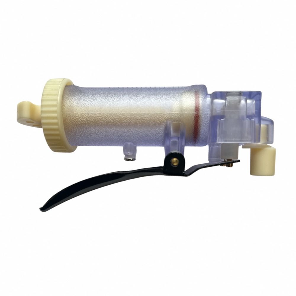 - За допомогою прокручування шприца створюєте тиск, щоб при натисканні на важіль наживка виштовхувалася