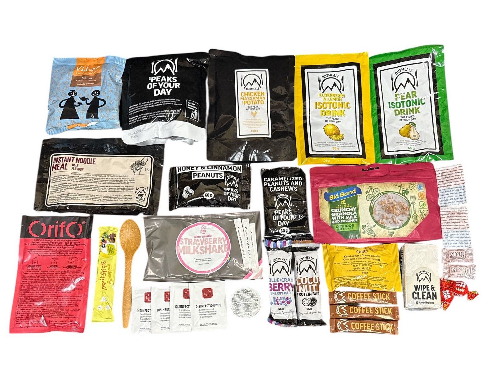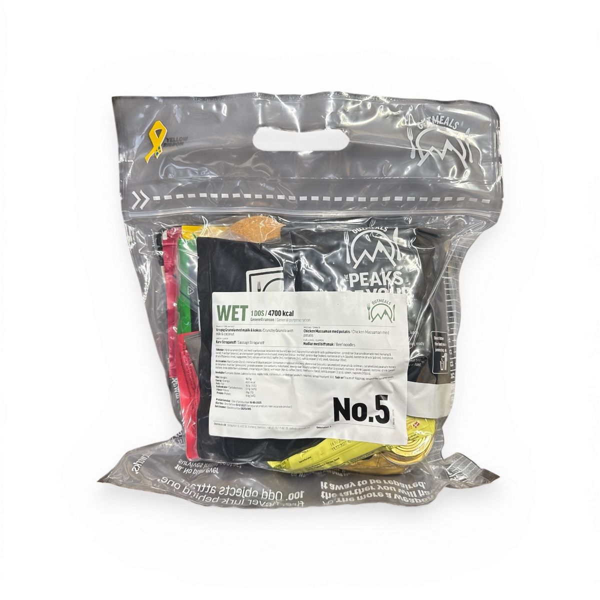 Шведський сухий пайок MRE — це повноцінний набір харчування на 24 години, розрахований на високі фізичні навантаження та використання у польових умовах. Раціон забезпечує організм необхідними калоріями (близько 4700 ккал) та включає різноманітні страви, напої та додаткові аксесуари для комфортного прийому їжі.