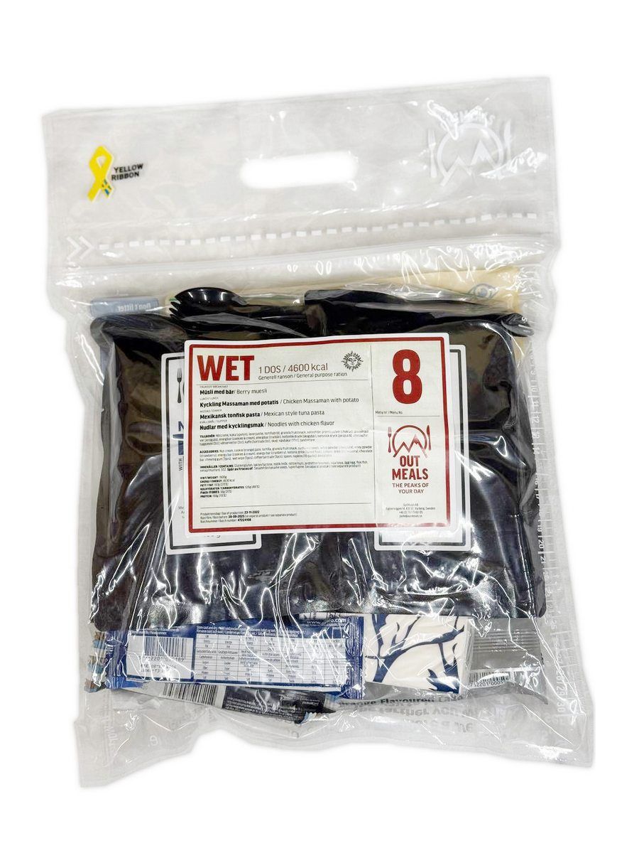Шведська суха пайка MRE (Meal Ready to Eat) – універсальний раціон, розроблений для забезпечення повноцінного добового харчування у польових умовах. Меню №8 розраховано на одну особу та містить 4600 Ккал, що робить його необхідним для активної діяльності в походах, на рибалці, в експедиціях або при виконанні тривалих завдань.