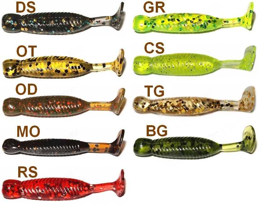 Виготовляється в дев'яти різноманітних забарвленнях, від натуральної до кислотної, що дозволяє підібрати уловистий варіант як для прозорої, так і для каламутної води.