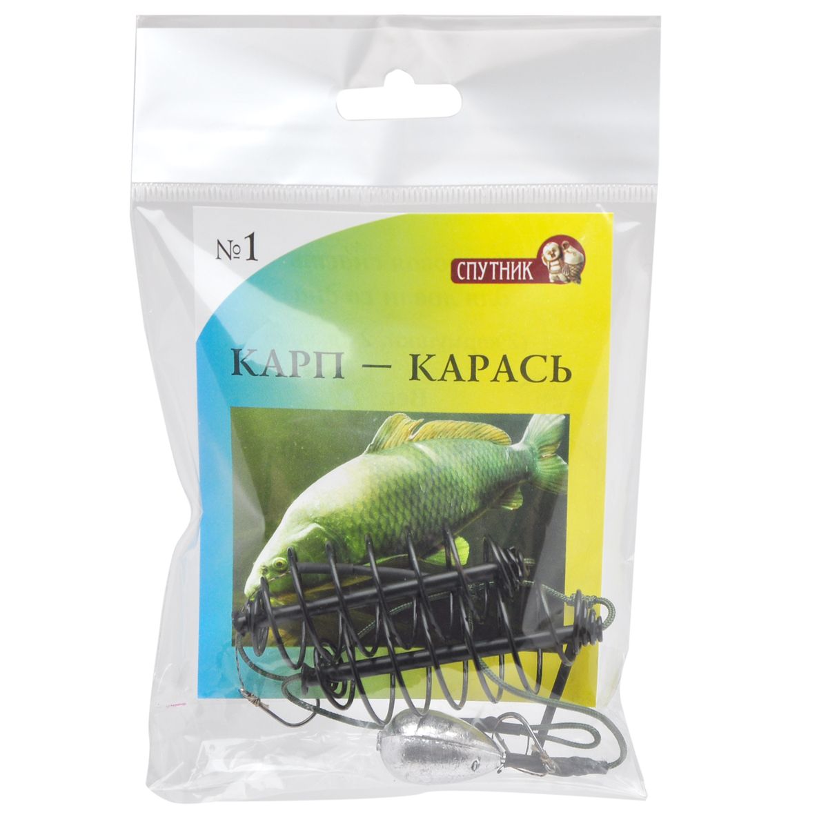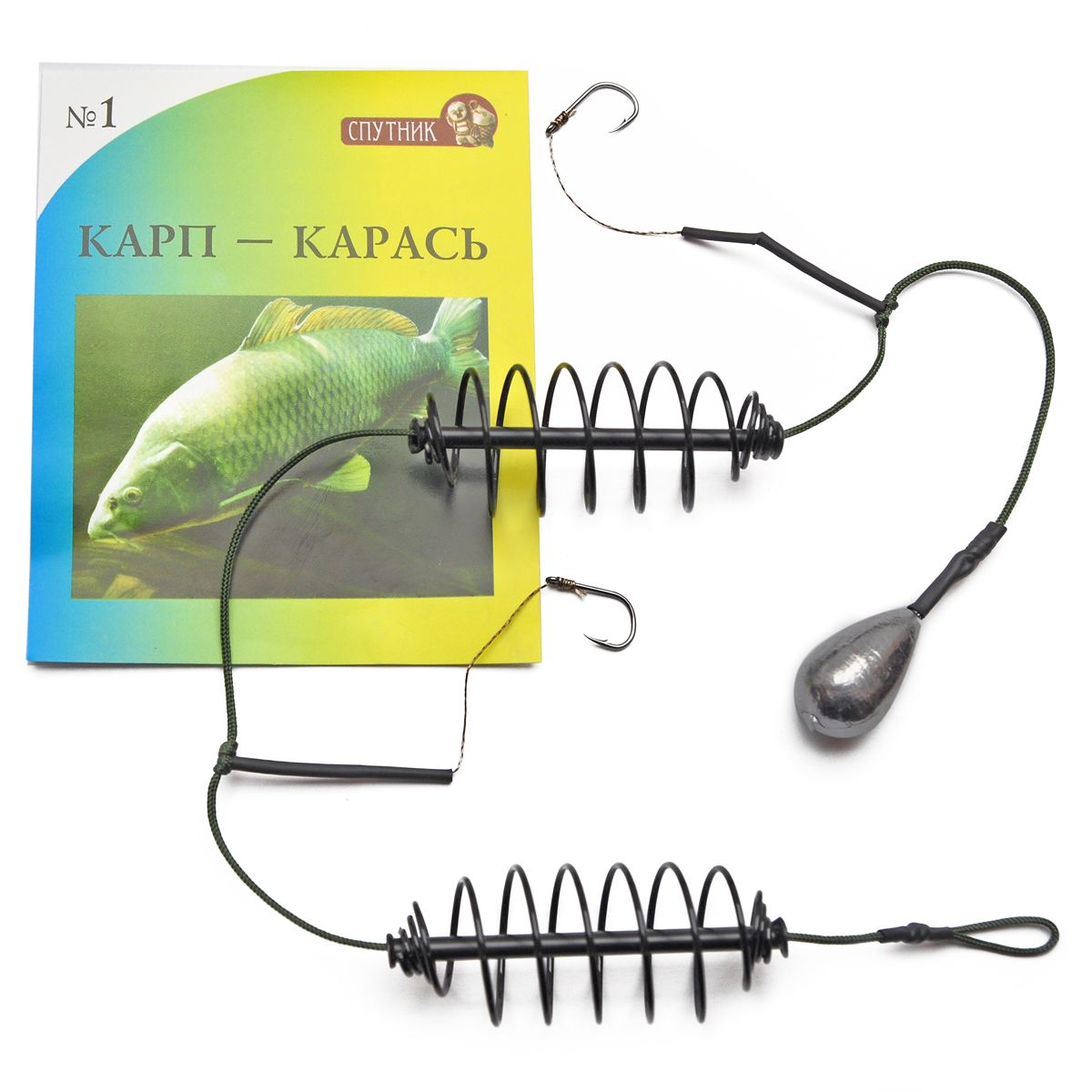 Снасть коропова Супутник Карп-Карась №1 - Годівниця пружина 2 шт. - 2 гачки - 30 г - Фарбований метал