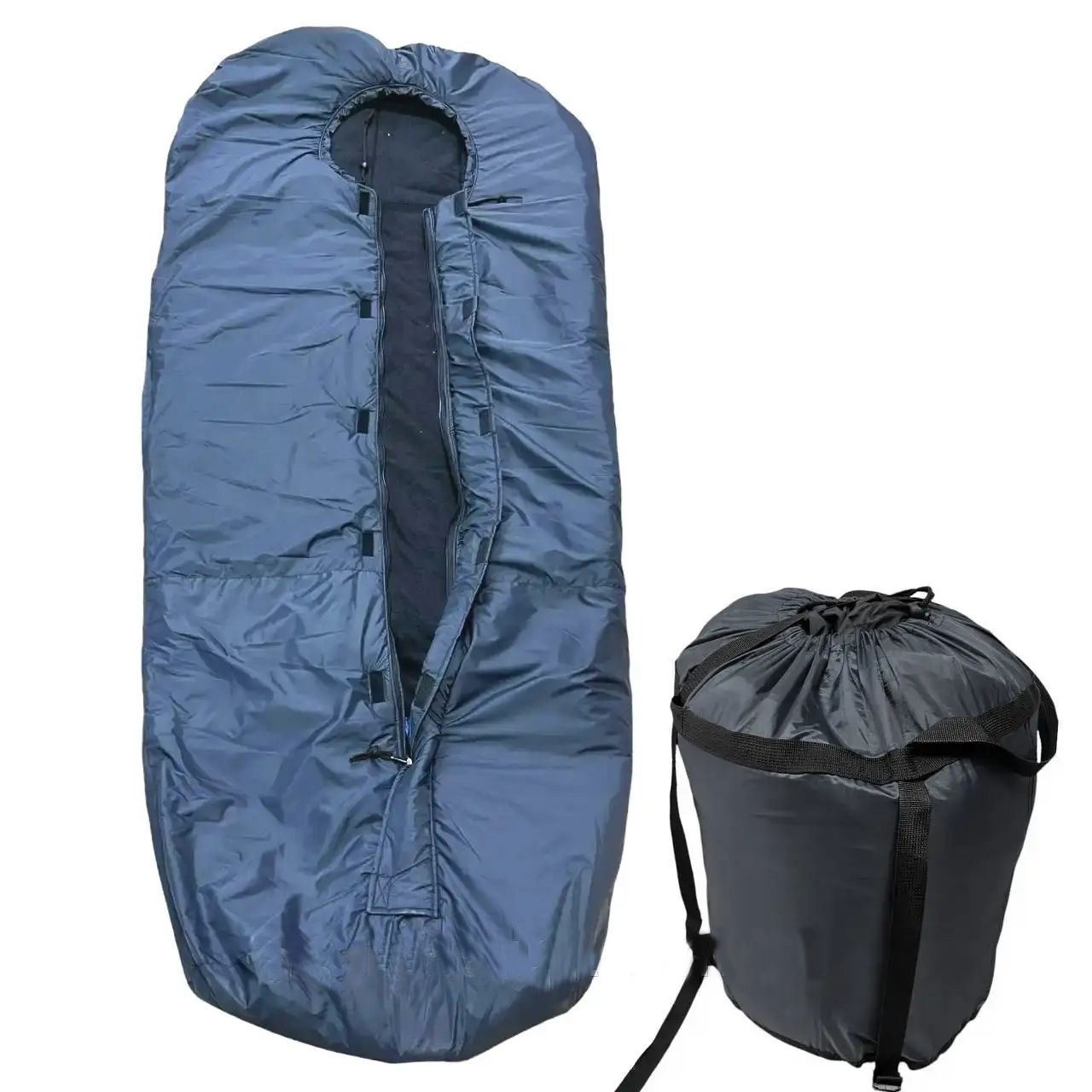 Армійський спальний мішок "Кіборг New 2022" - 3 шари синтепону, з підкладкою з флісу і верхом з водовідштовхувальної тканини Оксфорд, що не промокає, - використовується в збройних силах України в АТО. Призначений для низьких температур (до -30 градусів морозу). Є відділення для автомата та берців.