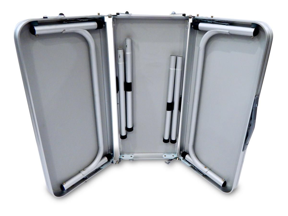Легкий, зручний, стійкий стіл ще й регулюється за висотою у двох положеннях. Має зручну ручку для перенесення.