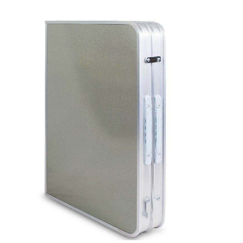 Стіл складається навпіл так, що перетворюється на невелику валізу, що ховається в чохол, який захистить від пошкоджень.