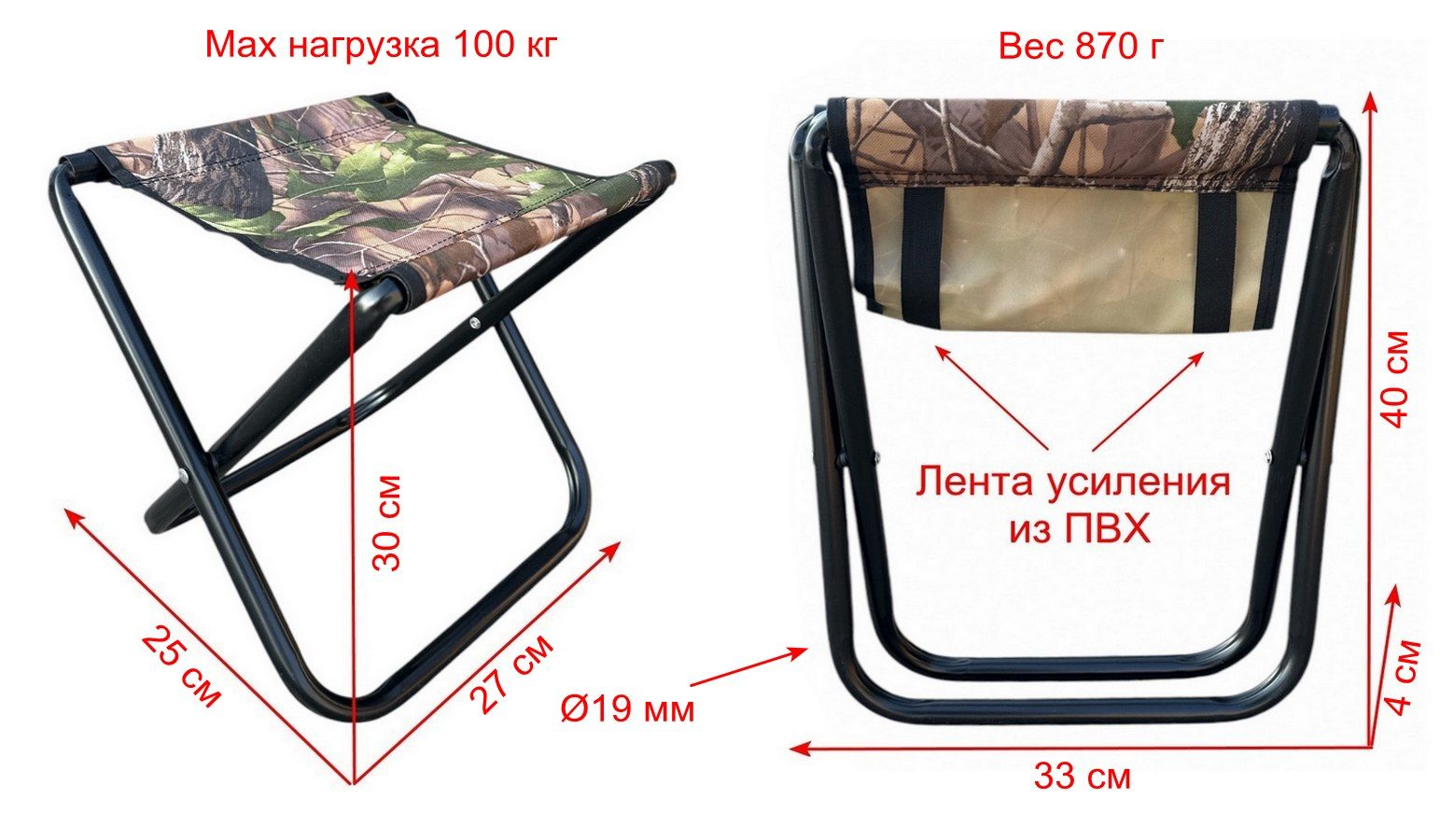- Матеріал посилення сидіння: 2 ПВХ стрічки