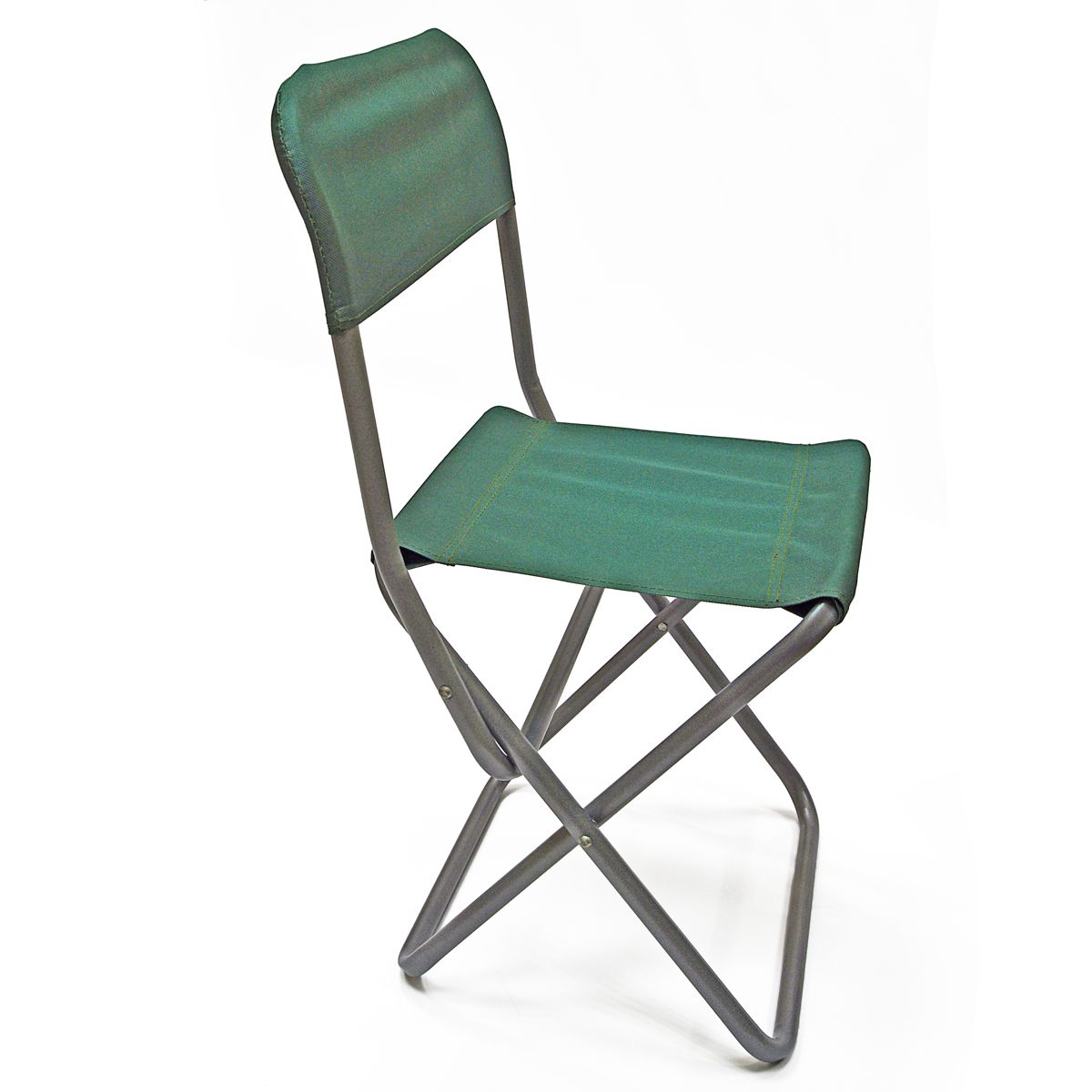 Простий, надійний розкладний стілець з металевих труб діаметром 18мм і міцної тканини.