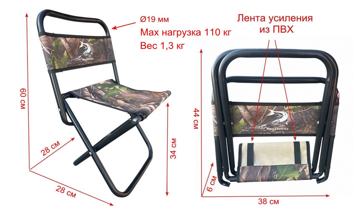 Розкладний стілець зі спинкою посилений Megastrike SH9-3-25 це чудовий варіант для любителів риболовлі, полювання та відпочинку на природі.