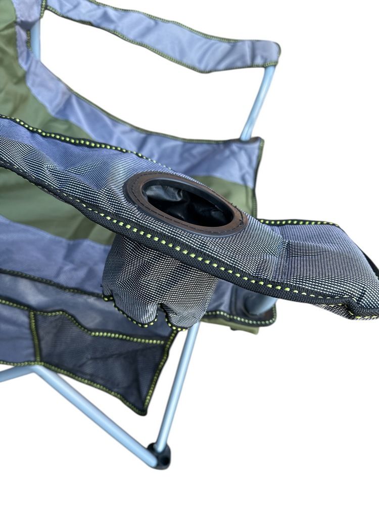 Стілець обладнаний зручними знімними підлокітниками, в один з яких вбудована зручна кишеня-тримач із сітки для склянки або пляшки з напоєм. Є органайзер, пристрочений до бокового шва сидіння.
