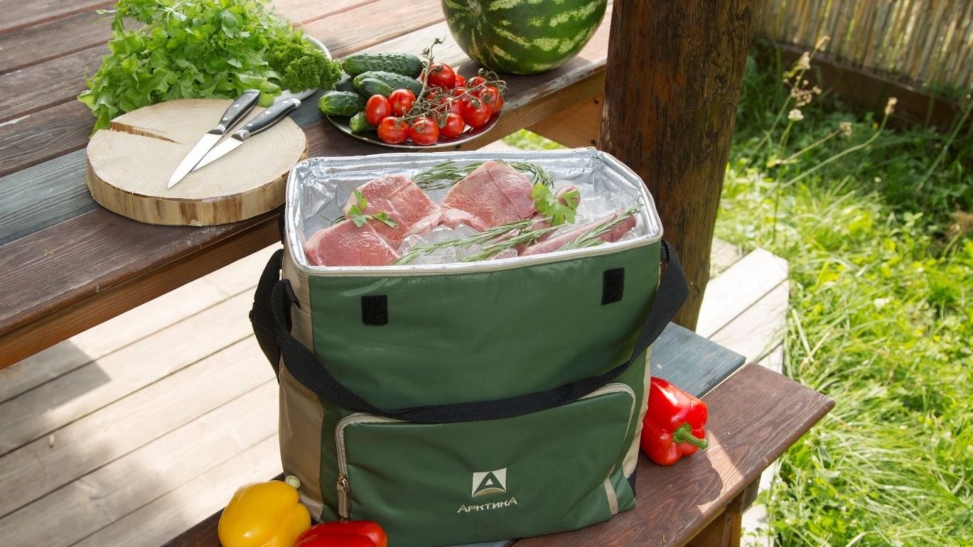 Сумка обладнана міцними ручками та широким ременем для перенесення на плечі. Є зовнішня містка кишеня для зберігання столових приладів, спецій, чаю. Об'єм холодильного відсіку - від 10 до 30 л. У складеному вигляді не займає багато місця. У лінійці представлені 2 кольори на вибір. Рекомендується використовувати разом з акумуляторами холоду серії АХ із розрахунку не менше 10% від об'єму термосумки.