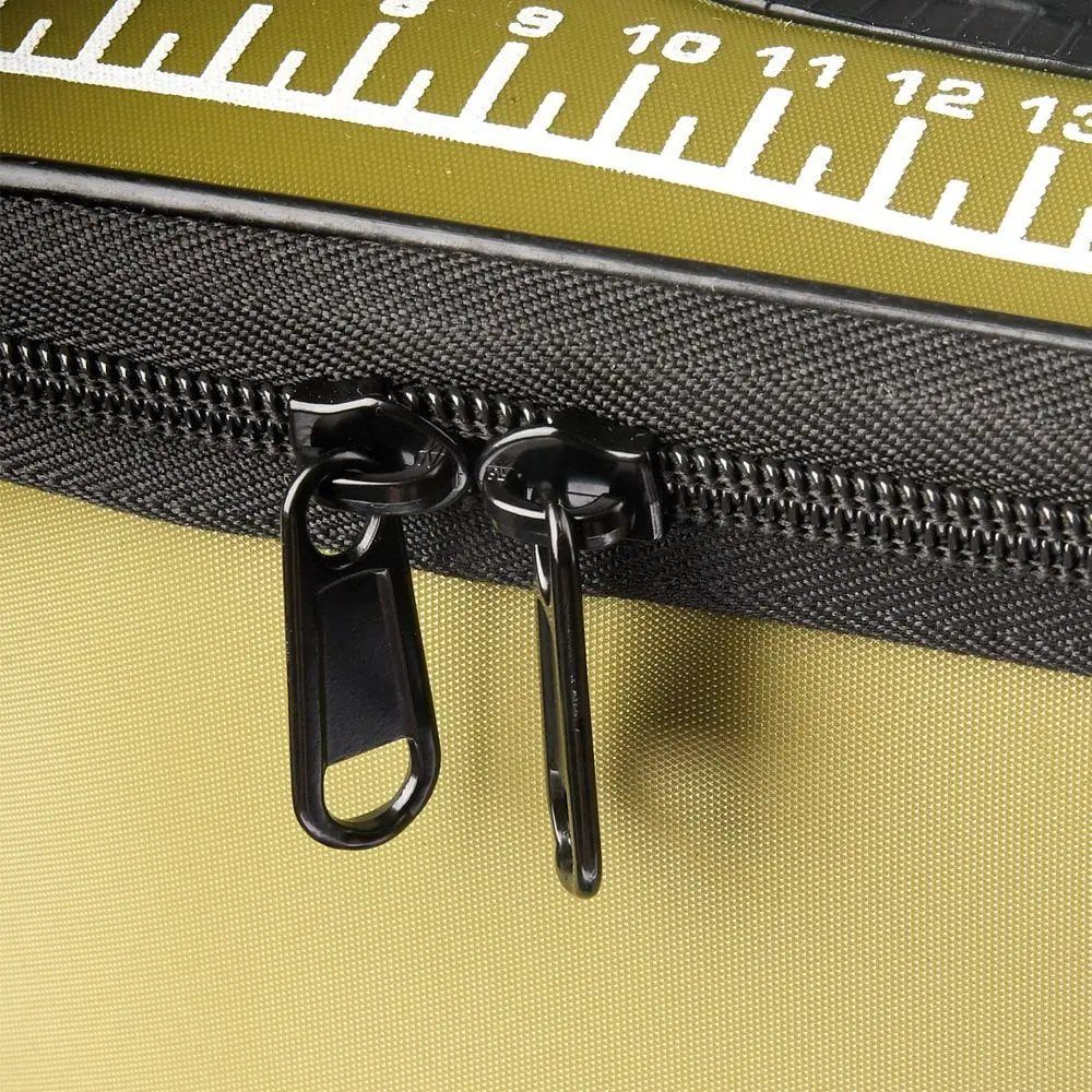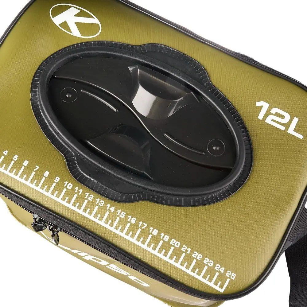 Кришка оснащена пластиковим клапаном з пружними стулками, завдяки йому швидко і зручно можна складати впійману рибу, не відкриваючи кришку сумки. Сама кришка закривається за допомогою надійної змійки.