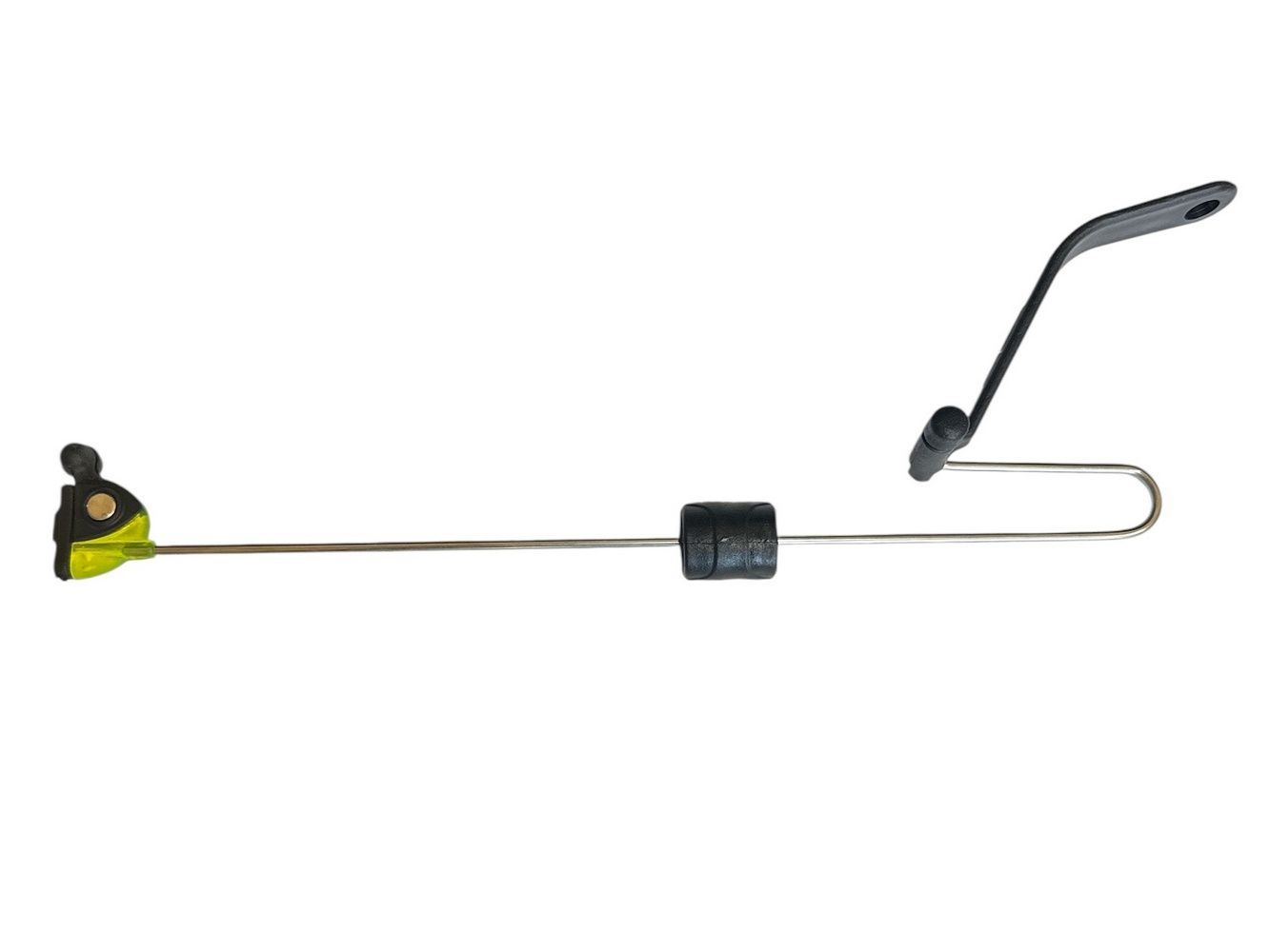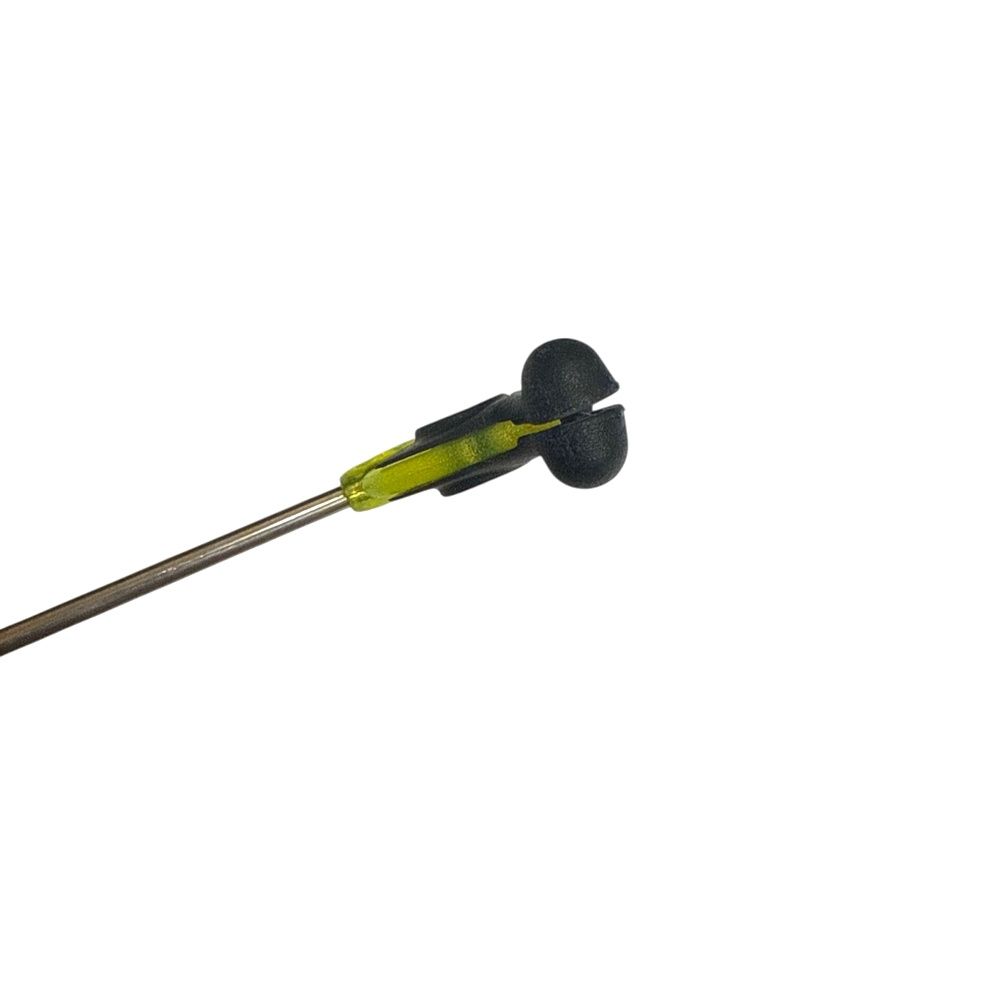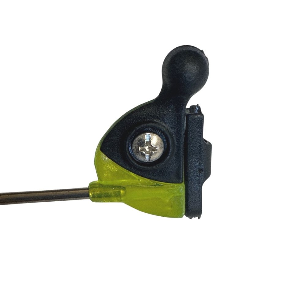 Цей свінгер ідеально працює в тандемі з електронним сигналізатором клювання і забезпечує надійний контакт волосіні з роликом. Це особливо важливо в ситуаціях, коли риба після клювання рухається у бік берега, послаблюючи натяг — сигналізатор спрацьовує коректно навіть у випадках. На відміну від більшості моделей із традиційними пластиковими або металевими фіксаторами, у цій конструкції застосовано механізм на магнітних кульках. Одна кулька металева, а друга - магнітна.