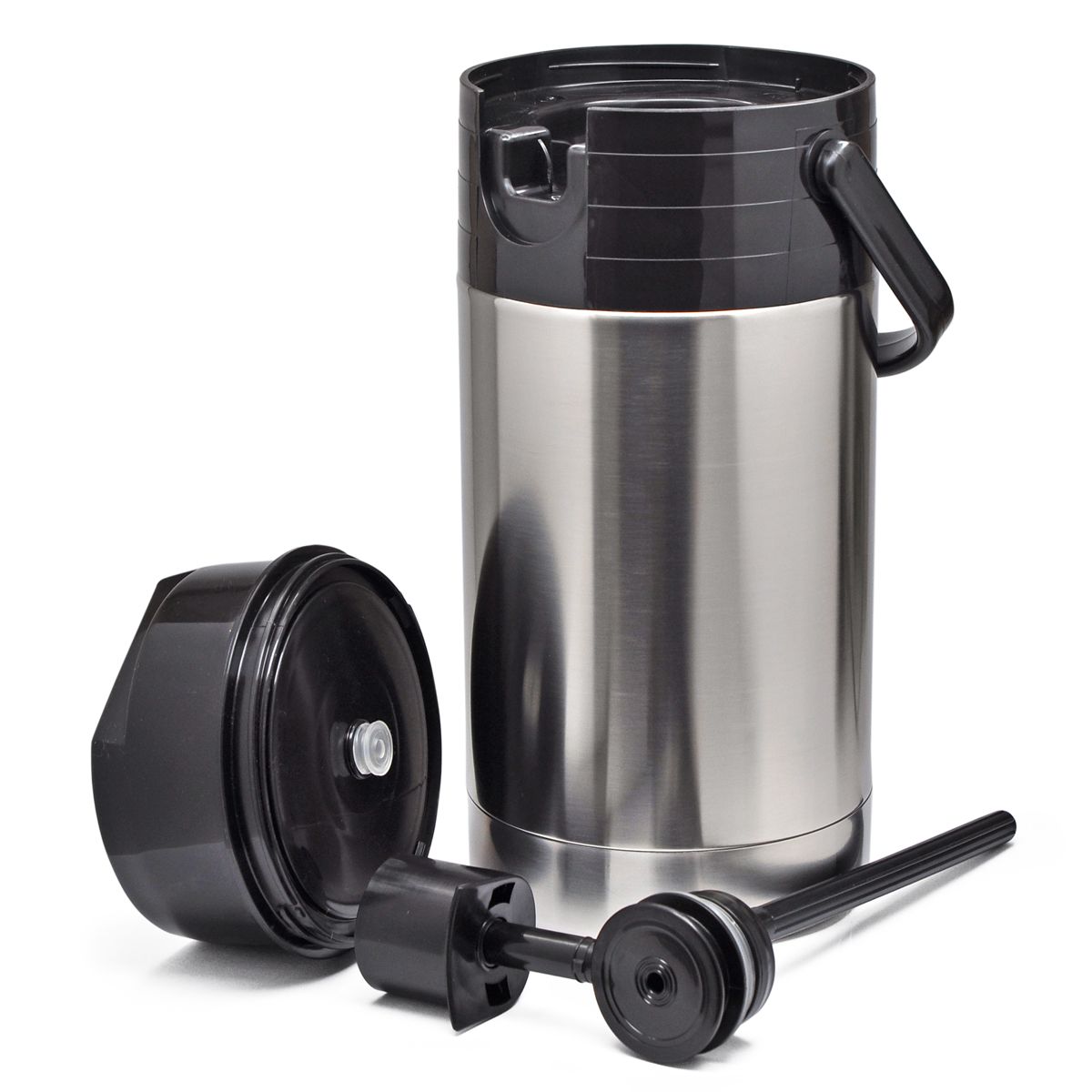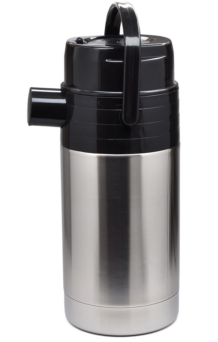 При натисканні на кнопку, термос нагнітається повітря і створюється тиск. Воно виштовхує рідину назовні трубкою стопора, встановленої всередині термоса. За один хід натискної кнопки помпи наливається щонайменше 70 мл вмісту. Кнопка має замк для блокування випадкового натискання.