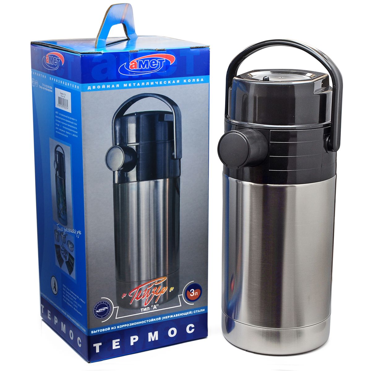 Термос Амет "Гейзер" - 3 л - тип А - З пневмонасосом