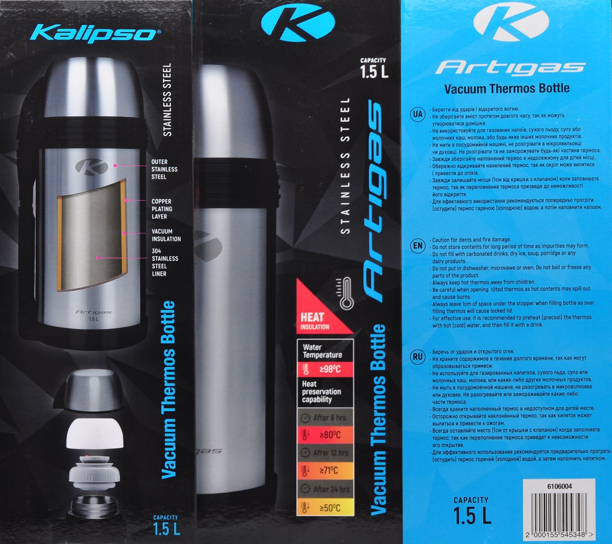 Серія термосів Kalipso Artigas підвищеної місткості з нержавіючої сталі. Ідеальний варіант для пікніків поїздок на дачу, виїздів на, рибалку.