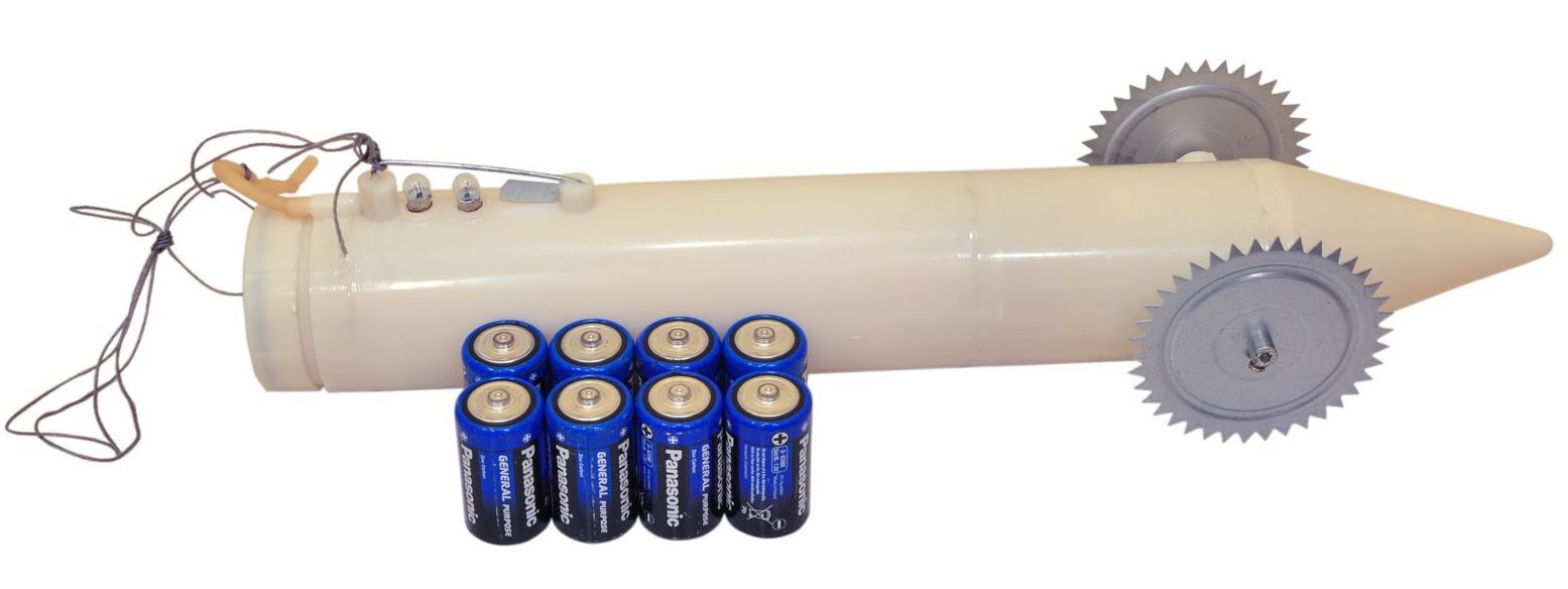 - Потягнувши шнур один раз на себе, одночасно включається двигун що обертає колеса і світлодіод, який полегшує пошук торпеди під льодом.