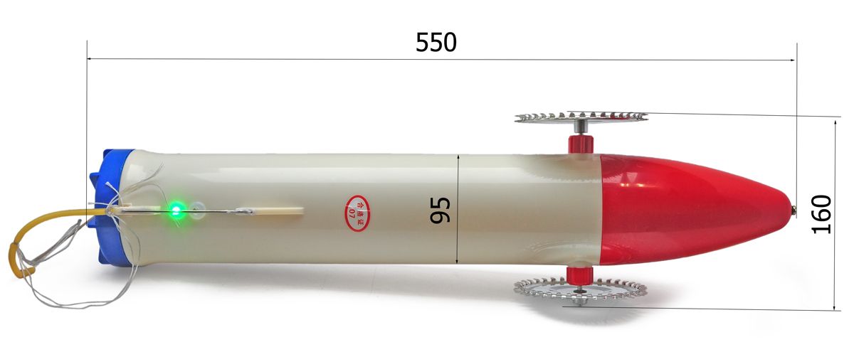 - Потягнувши шнур один раз на себе, одночасно включається двигун що обертає колеса і світлодіод, який полегшує пошук торпеди під льодом.
