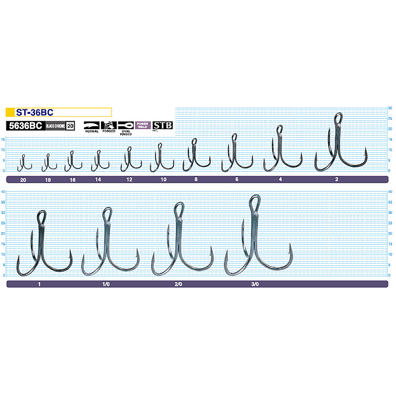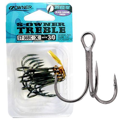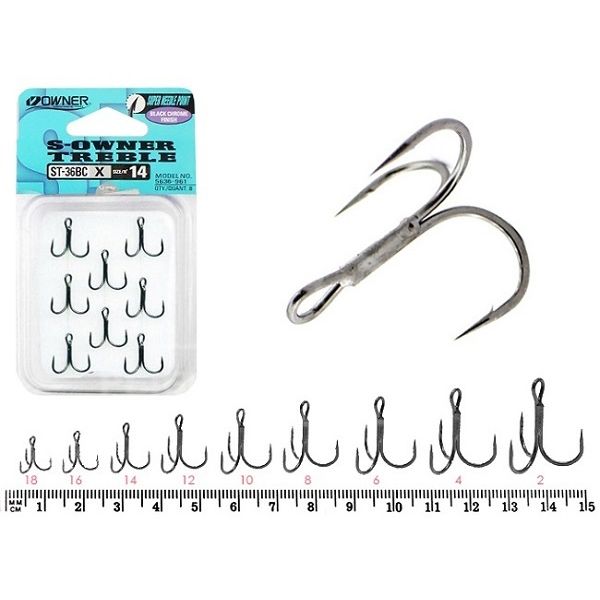Трійники Owner ST-36ВС – серія потрійних гачків з круглим загином гачків, прямим голковим заточенням жалом і трохи подовженим цівком.